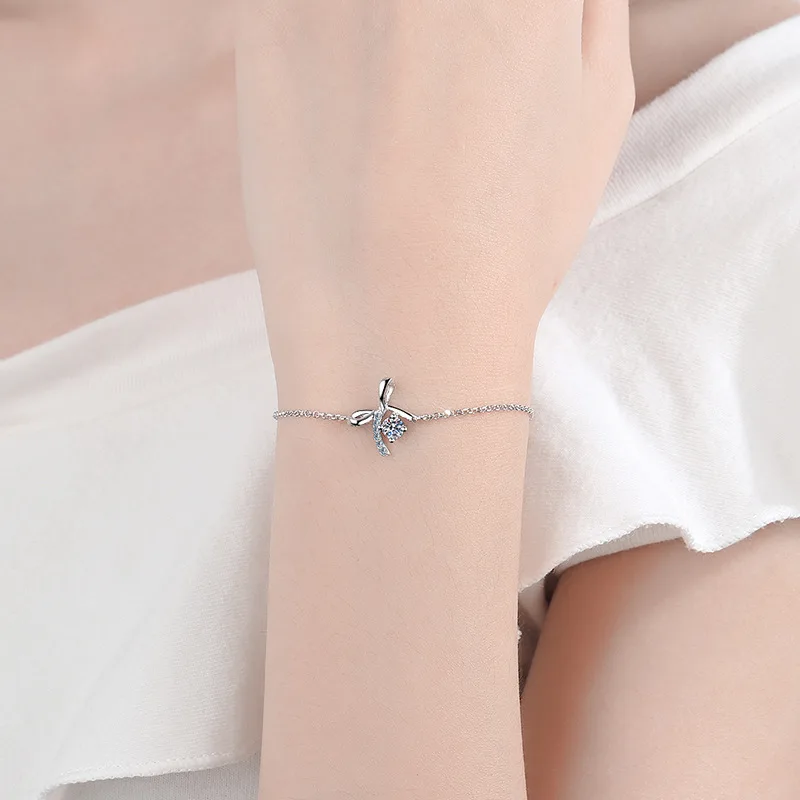 Браслет-цепочка женский из серебра браслет с бантами пробы, с муассанитом 925 граненой огранки