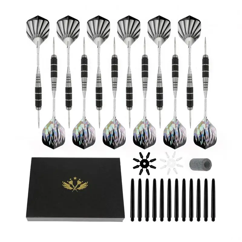 12 шт. Дротика s Набор Профессиональный Мягкий Наконечник Дротика s безопасная стальная Дротика пластиковая ручка Дротика листья точильный камень 2 цвета развлечения в помещении