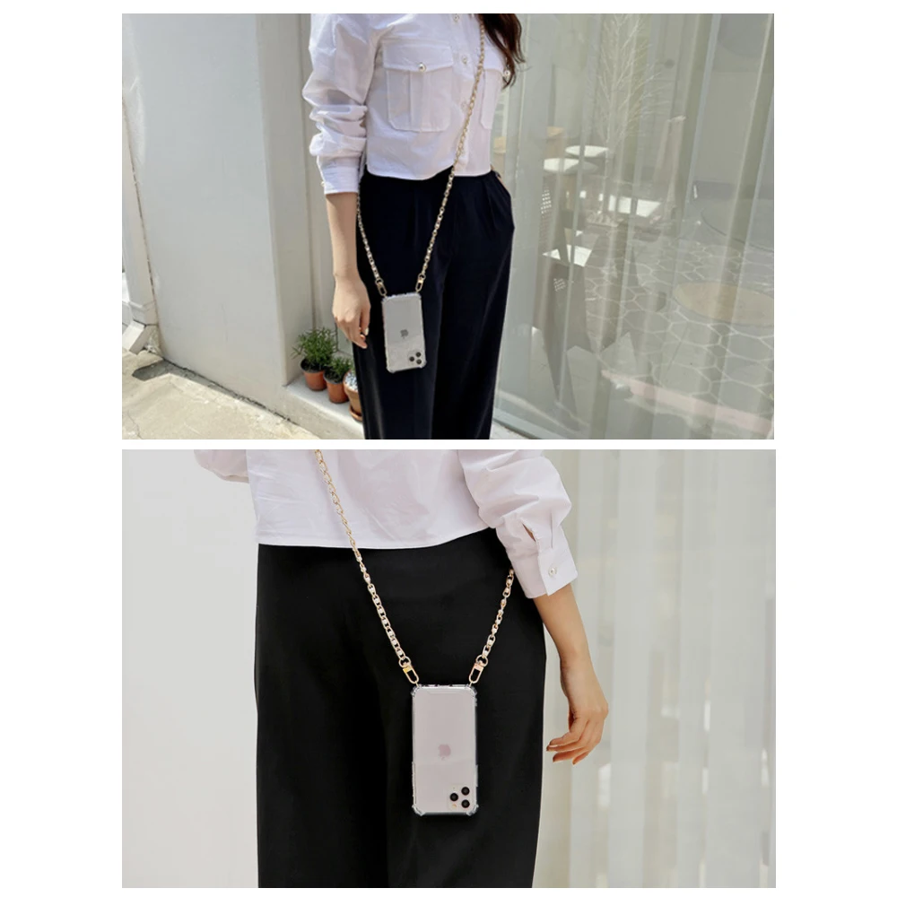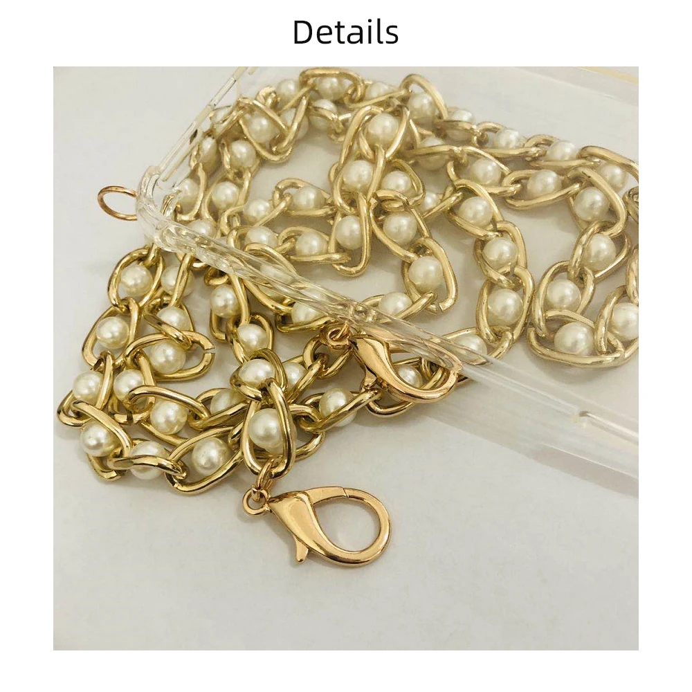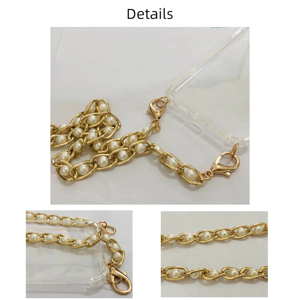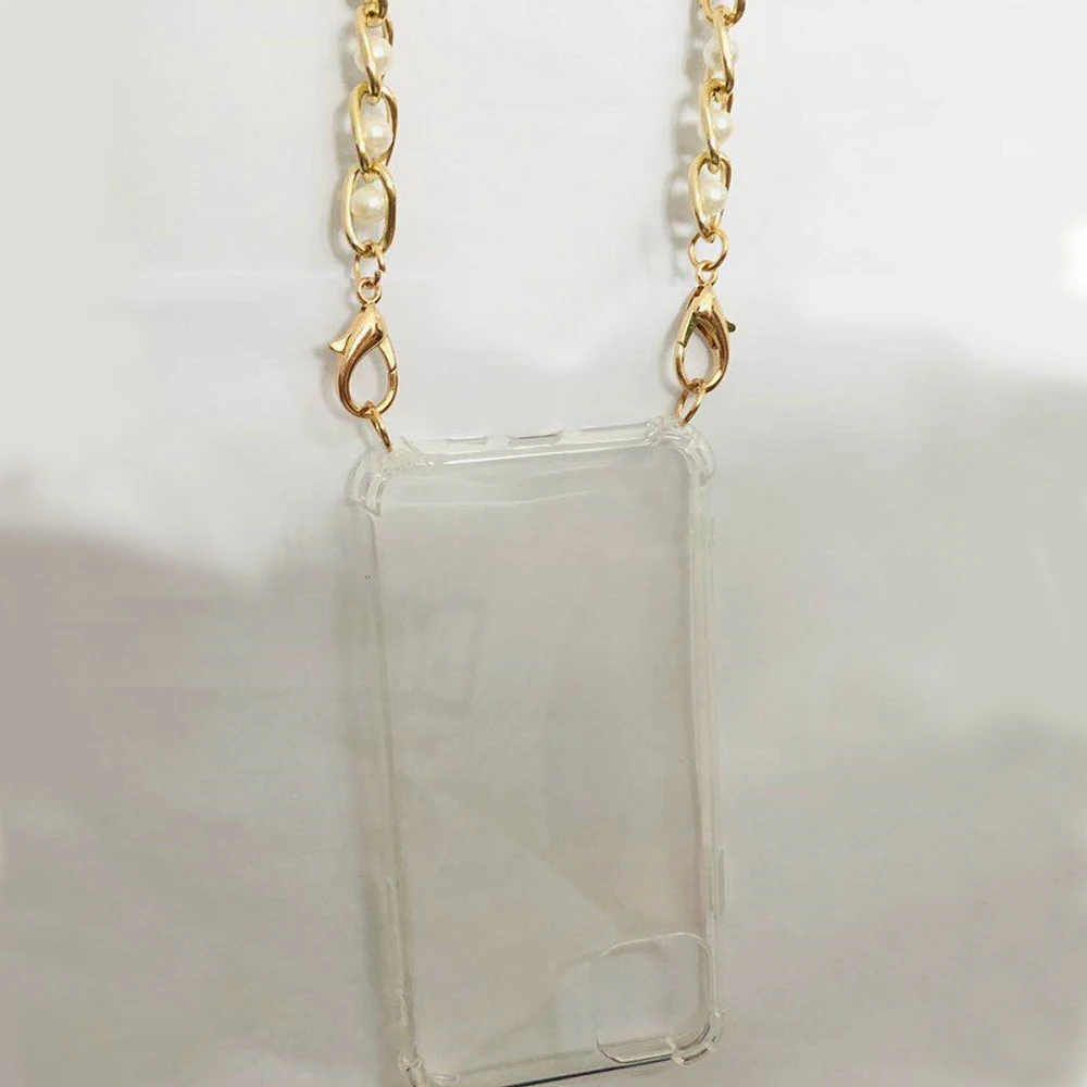 Роскошный прозрачный чехол для сотового телефона с жемчужным ремешком и цепочкой, чехол для iPhone 12 11 Pro 7 8 8Plus XR XS Max SE 2020, мягкий чехол
