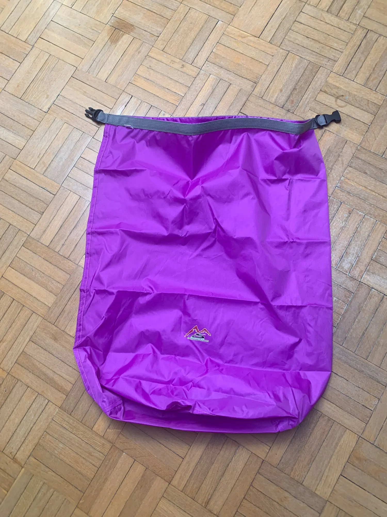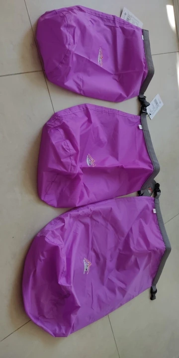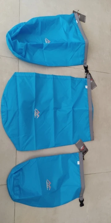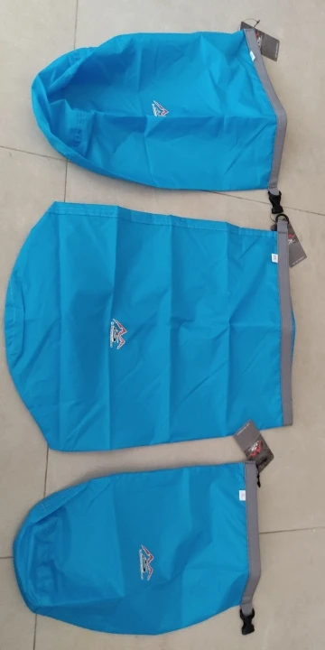 Лёгкий мешок из тонкой ткани, швы проклеены, размеры как в описании, для спальника в рюкзаке очень хорошо подходит, на герметичность в воде не проверяла.