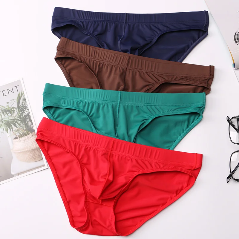 Мужские сексуальные трусы-брифы из ледяного шелка, Трусики-бикини, мягкие короткие мужские трусы с мешочком для пениса, сексуальное нижнее белье