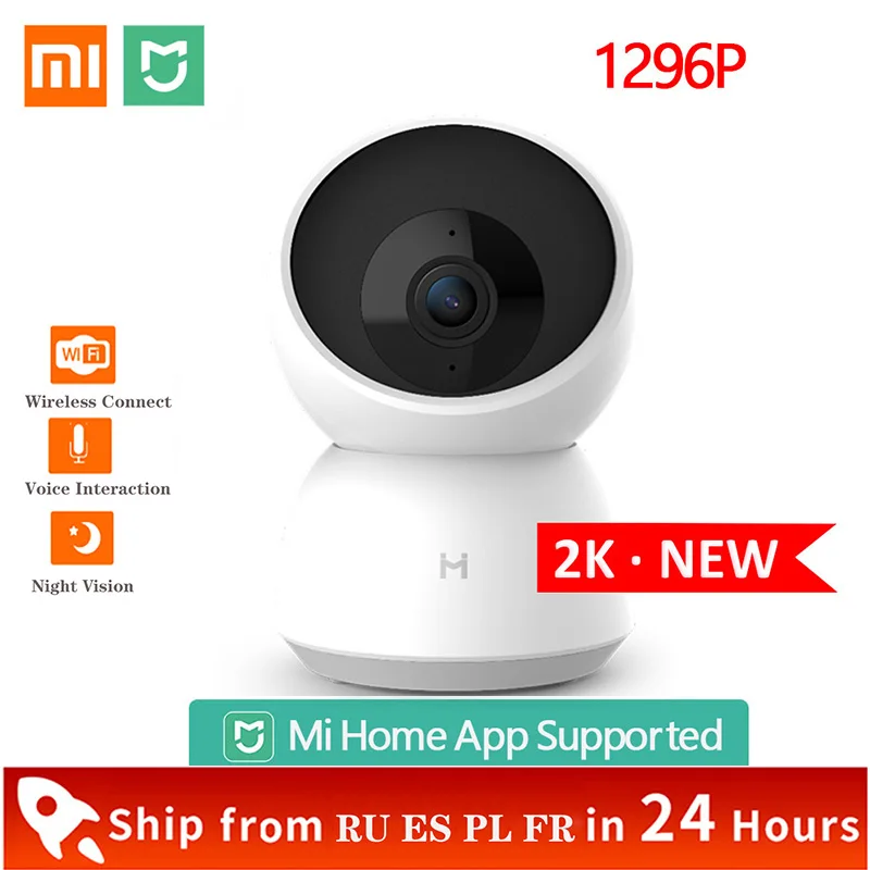Камера видеонаблюдения Xiaomi, камера безопасности с функцией ночного видения, 1296 пикселей, 2K, Поддержка приложения Mijia