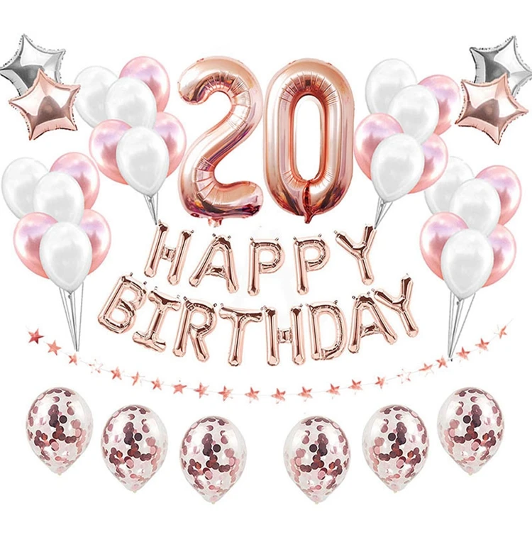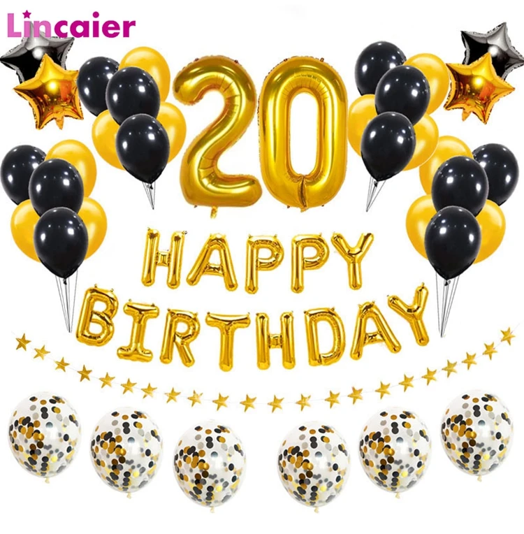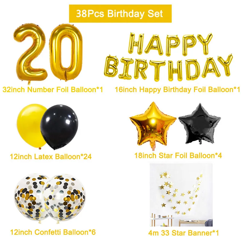38 шт., золотистые и черные воздушные шары, 20 лет