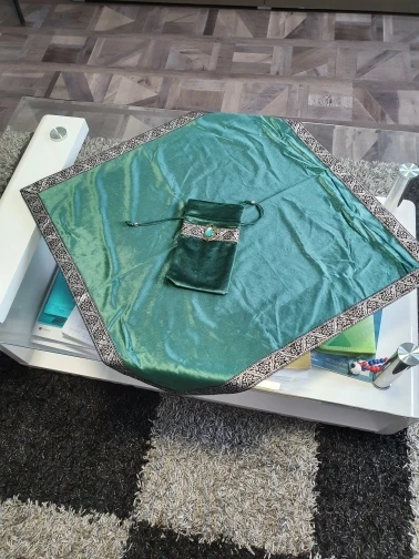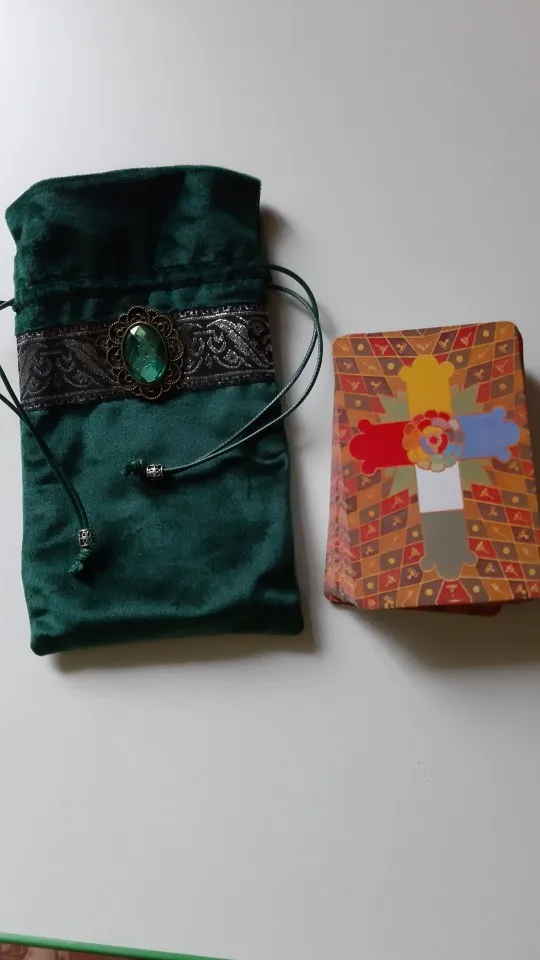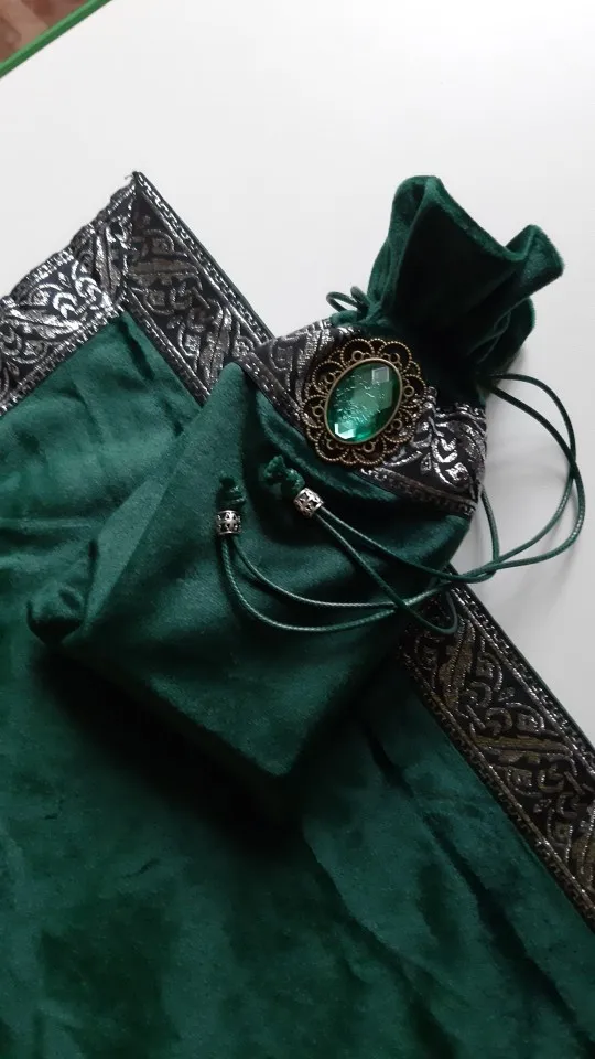 Очень красивые, приятные на ощупь. Цвет такой как и на фото продавца. Скатерть прошита аккуратно, мешочек изнутри пришлось обработать зажигалкой. мешочек для карт большой и свободный для стандартных. Можете смело покупать Ставлю пять ⭐⭐⭐⭐⭐звезд. С продавцом не общалась. Спасибо продавцу