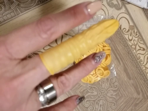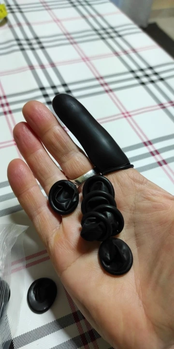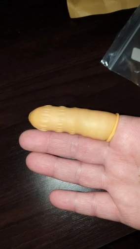 Товар выглядит так, как он выглядит. В моем случае у меня есть несколько толстых пальцев, и конец наперсток немного сжимается, хотя проблему можно разрезать и решить.