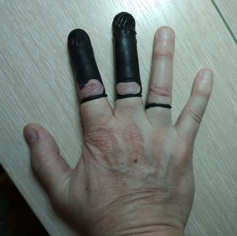 Хорошо Практичная защита пальцев. Хорошее качество. Делает пальцы очень заметными, так как они желтые. Хорошо для безопасности. Идеально подходит.