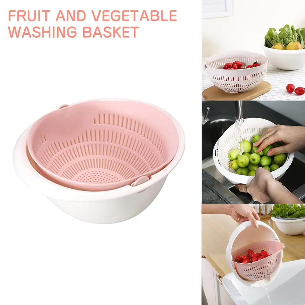 Кухонная сливная корзина, сетка для мытья фруктов и овощей, портативная Съемная двухслойная полая корзина для хранения, Пластиковый Органайзер