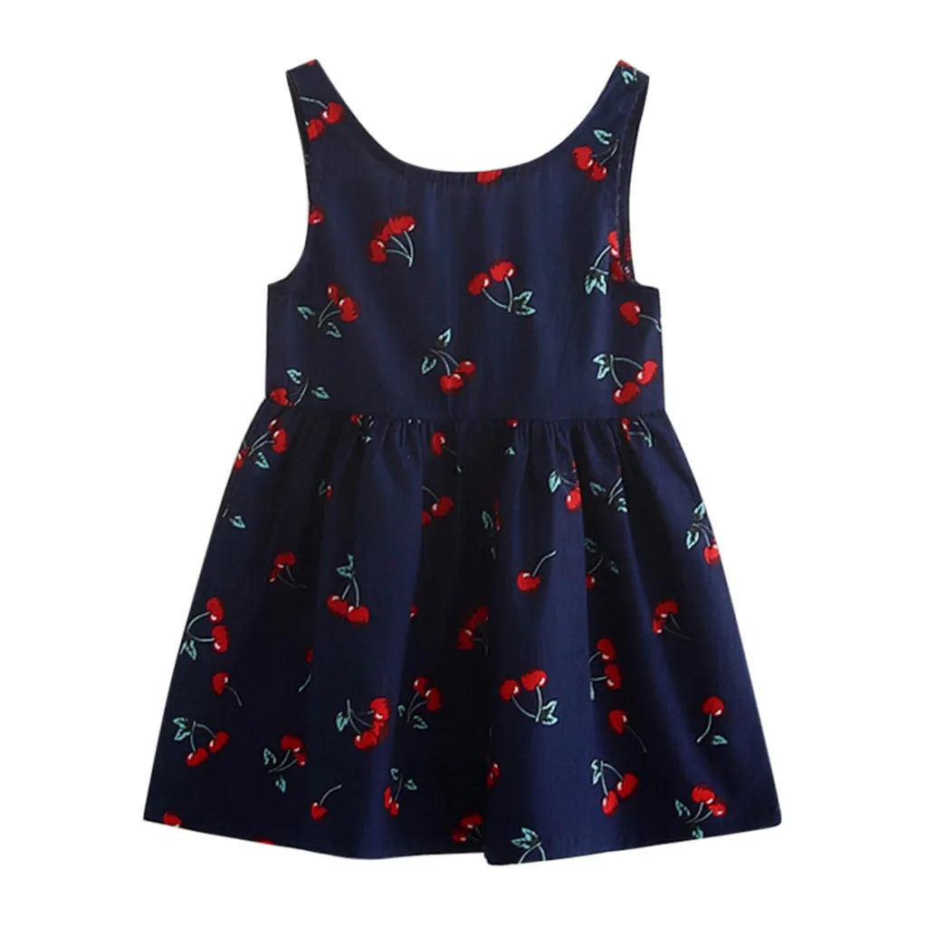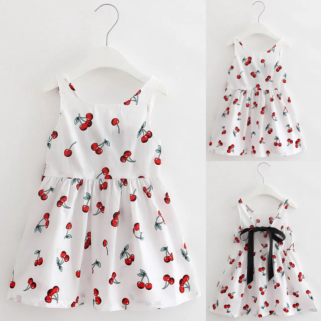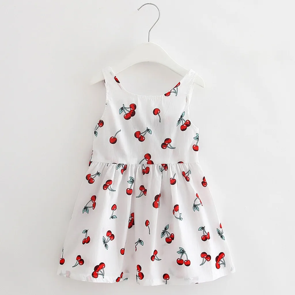 Летнее платье для девочки, маленькое свежее платье принцессы без рукавов с принтом вишни, взрывобезопасная простая популярная одежда, детская одежда, 05 *