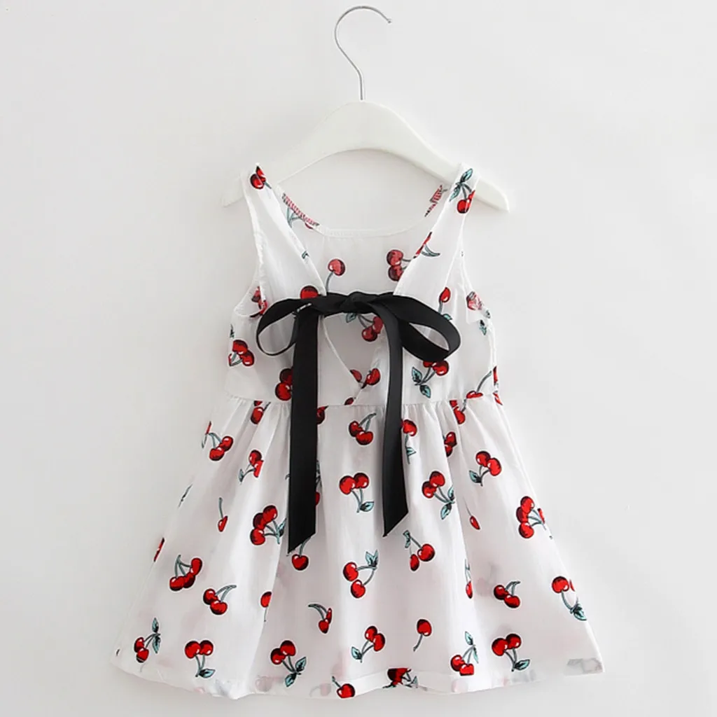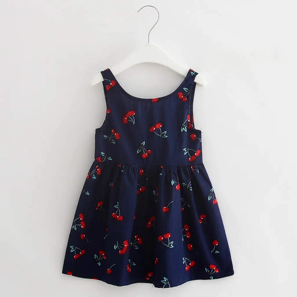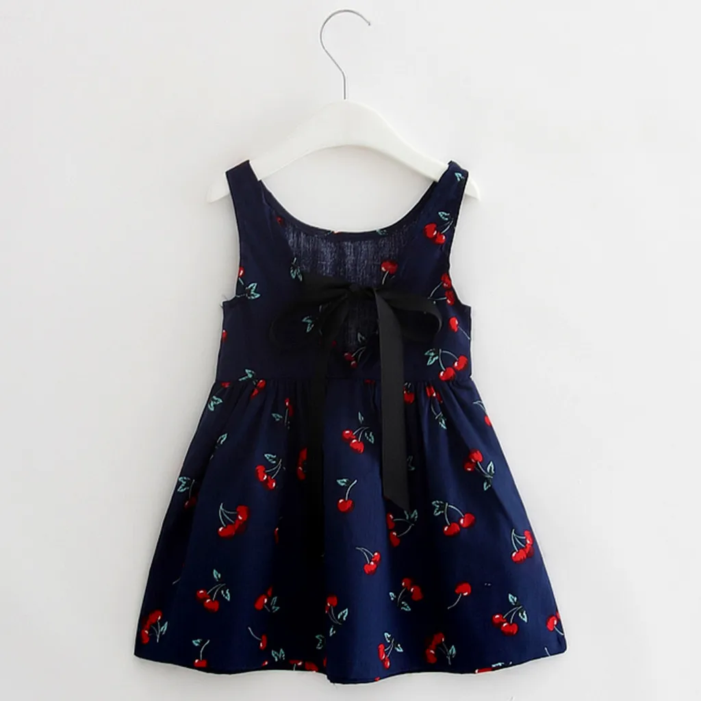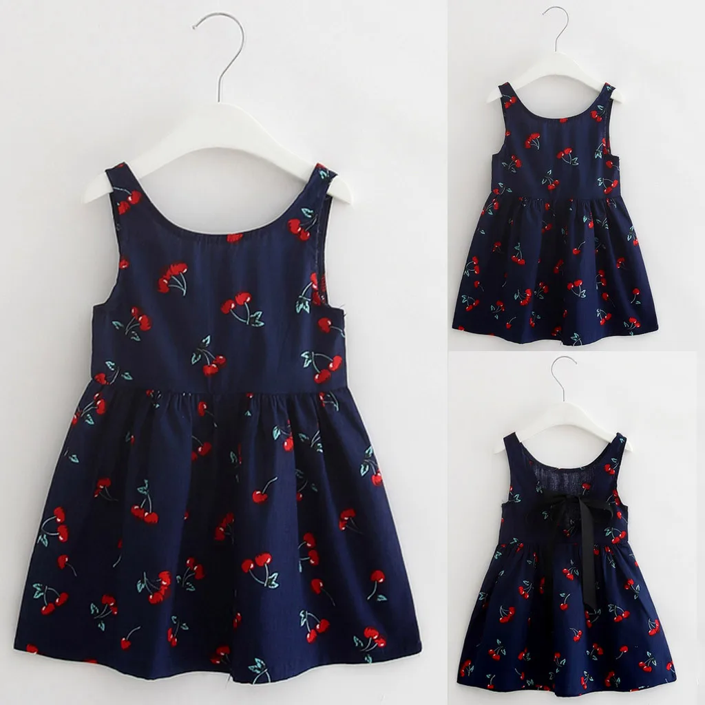 Летнее платье для девочки, маленькое свежее платье принцессы без рукавов с принтом вишни, взрывобезопасная простая популярная одежда, детская одежда, 05 *