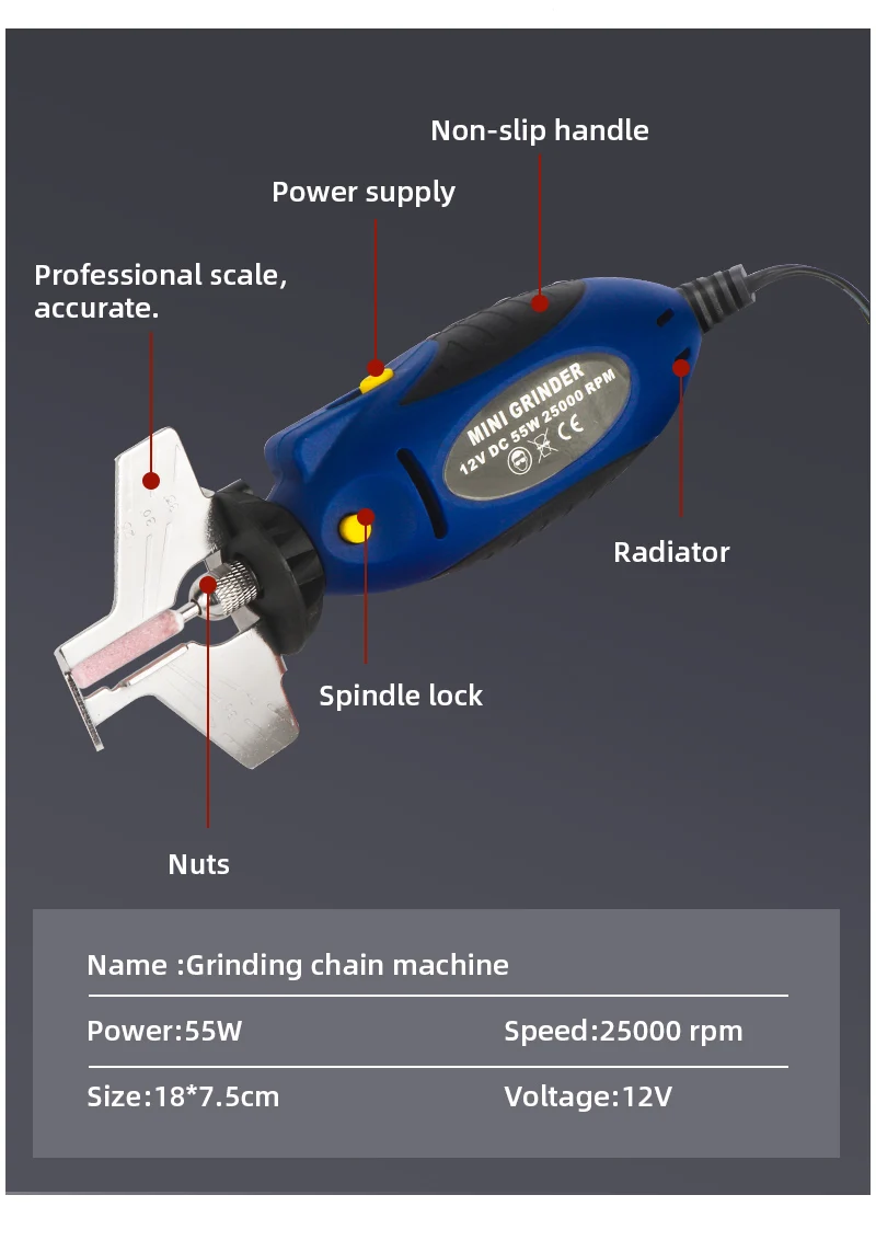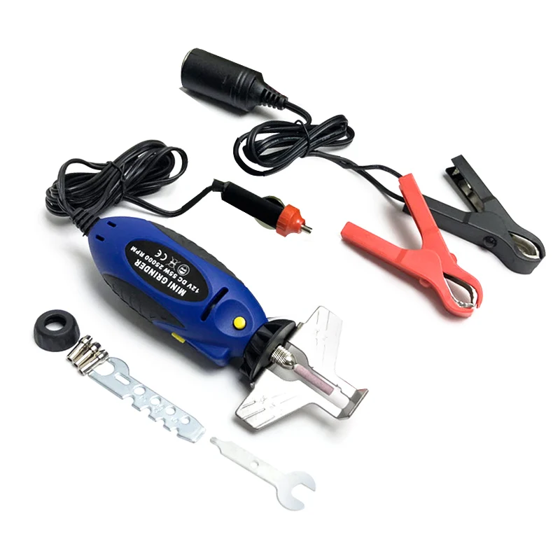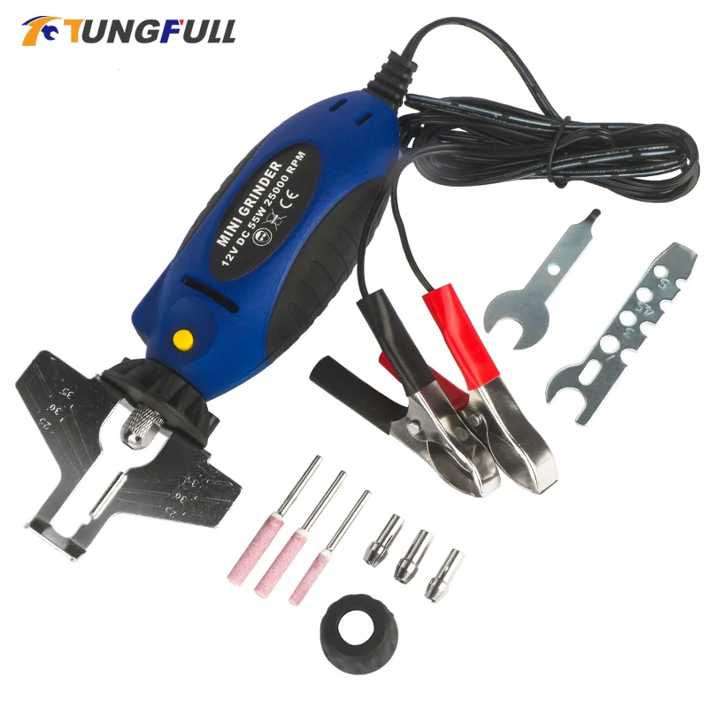 -Прочный, экономичный инструмент, который облегчает ручную заточку. Прочный и надежный.-Работает на стандартном автомобильном аккумуляторе 12 вольт.-Поставляется с вилкой 12 В и адаптером для аккумулятора.-В упаковке Есть четыре размера шлифовальных камней 4 мм (5/32 "), 4,5 мм, 4,8 мм (3/16") и 5,5 мм (7/32 ") (т. Е. Один из каждого)-Блокировка шпинделя для облегчения замены шлифовального камня. 5-метровый шнур питания