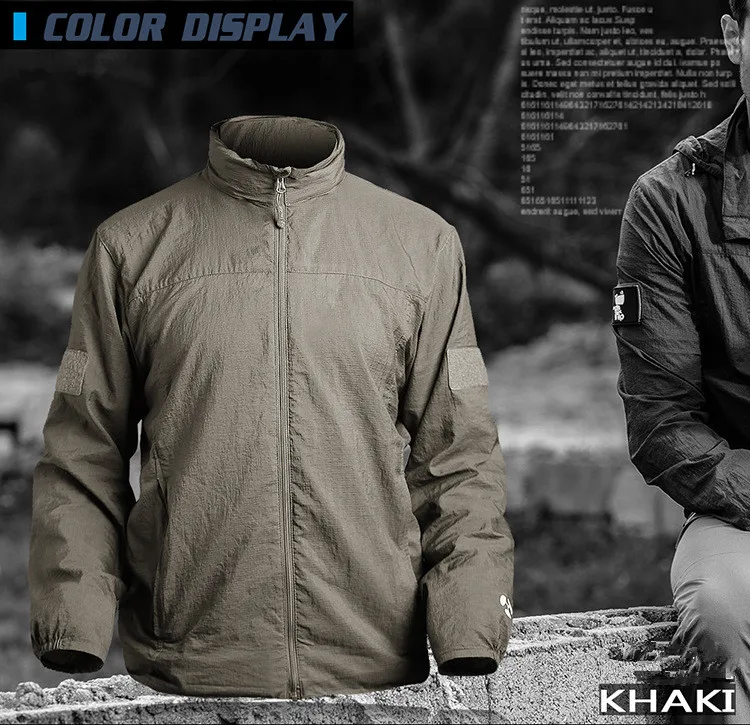 Куртка мужская быстросохнущая, на молнии, в стиле милитари, летняя, водонепроницаемая, ульсветильник легкая, тонкая