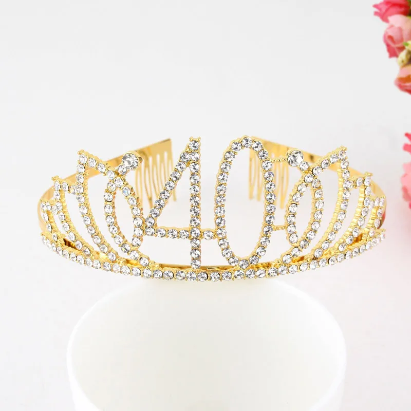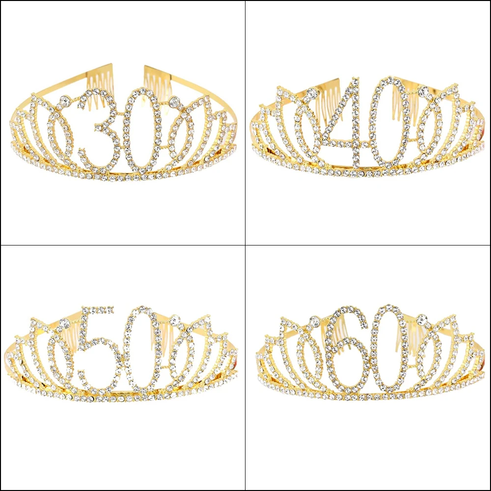 Тиара для торта, Золотая тиара 30, 40, 50, 60, 70, 80 для дня рождения, украшение для торта для девочек, девочек, с 30, 40, 50, 60, 70 лет, день рождения