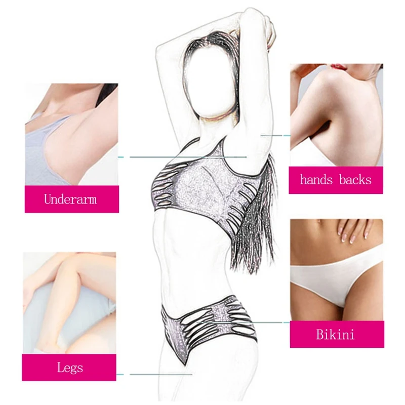 Места удаления волос: ноги, лицо, подмышки, руки, половые органы