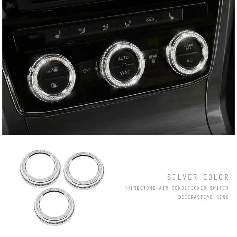 3 шт.компл. шикарная Алмазная ручка контроля воздуха климат-контроль Кольцо Обложка Наклейка отделка для Volkswagen VW Golf Jetta CC