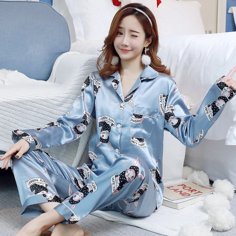Осенне-зимняя женская шелковая пижама с длинным рукавом + брюки, Же...