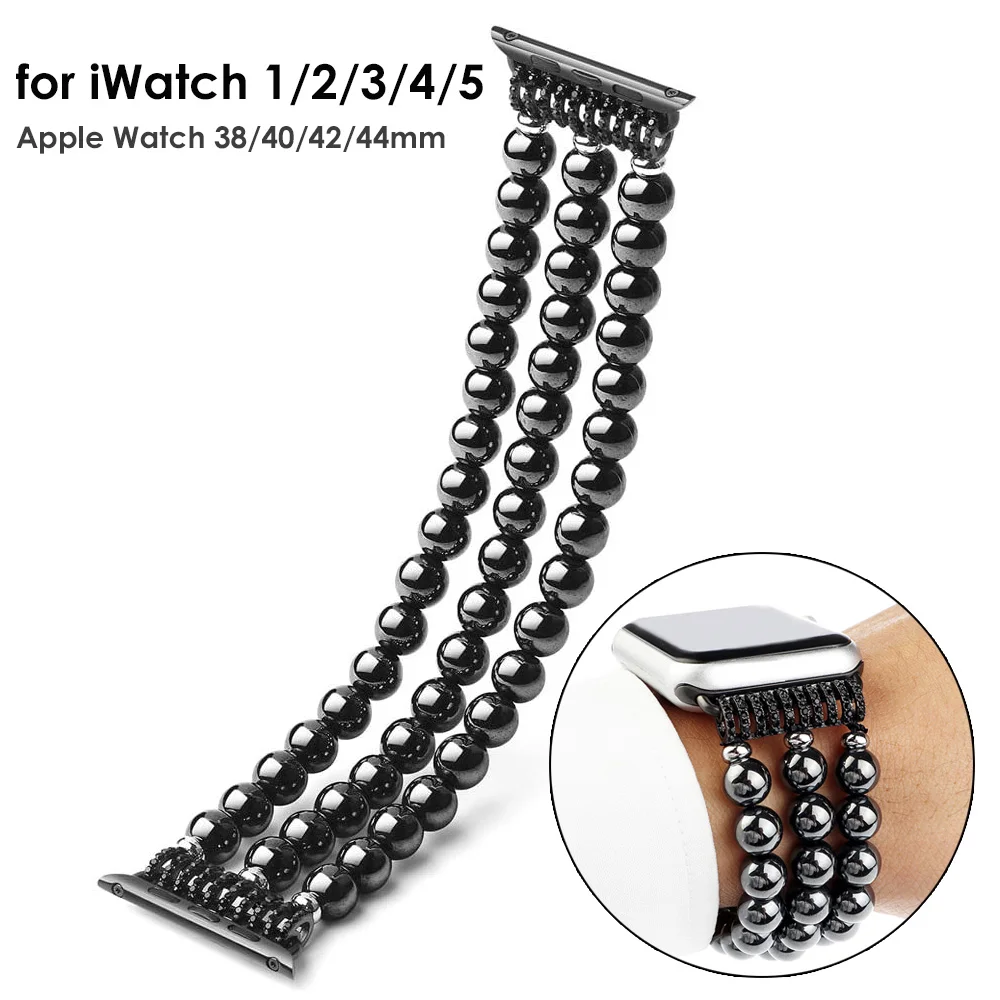 Браслет Obsidian с камнями для Apple Watch, мужской и женский браслет ручной работы, браслет с натуральным бисером, роскошные iWatch 5/4, 40 мм, 44 мм