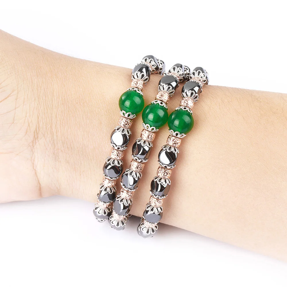 Блестящие стразы, бусины из обсидиана, нефритовые бусины, адаптеры из нержавеющей стали, прочная эластичная нить.