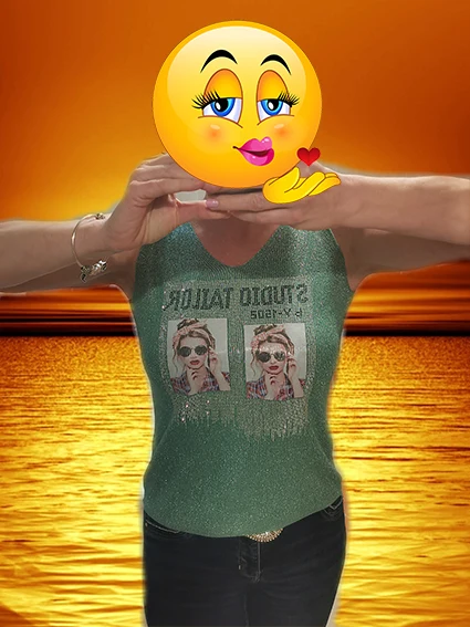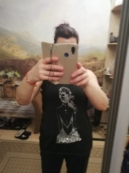 Очень красивая рубашка. Он мне идеально подходит. V-образная Горловина не слишком низкая, мне очень нравится. Ткань красивее, чем на фотографиях. Он сверкающий. Я не могу хвалить его достаточно. На зеленой рубашке сверкающий образ девочки выглядит не так хорошо, как в розовой рубашке и в других цветах. Очень рекомендую!