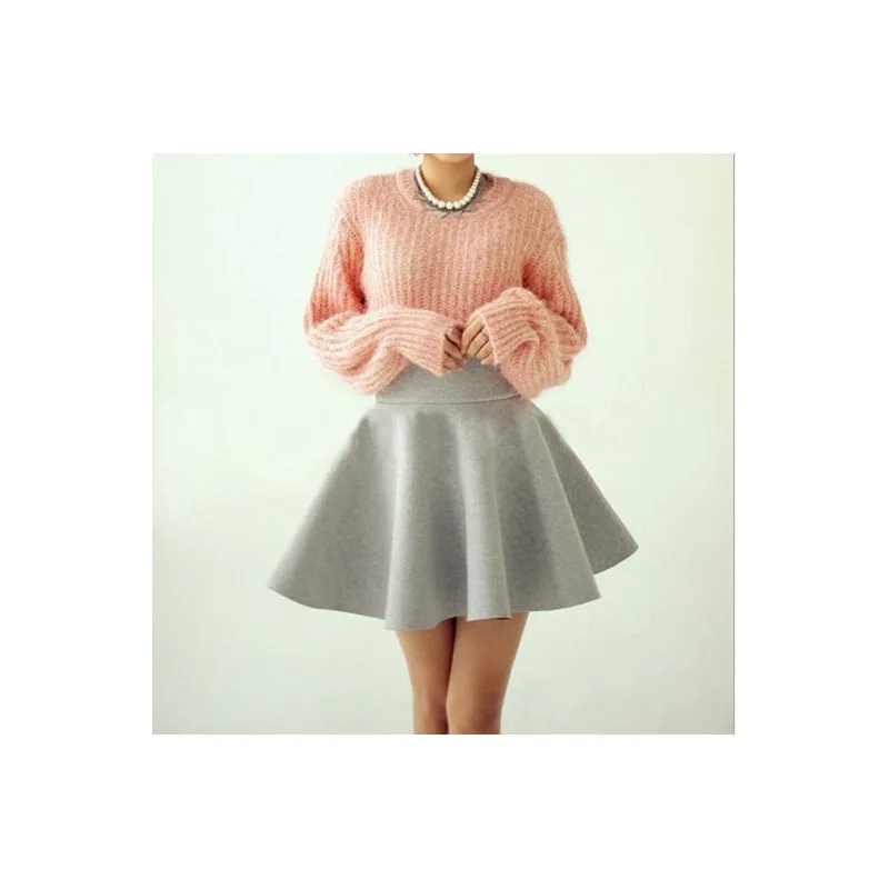 Мини-юбка женская однотонная трапециевидная с высокой талией