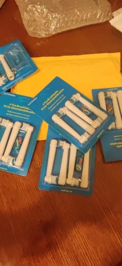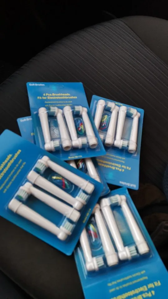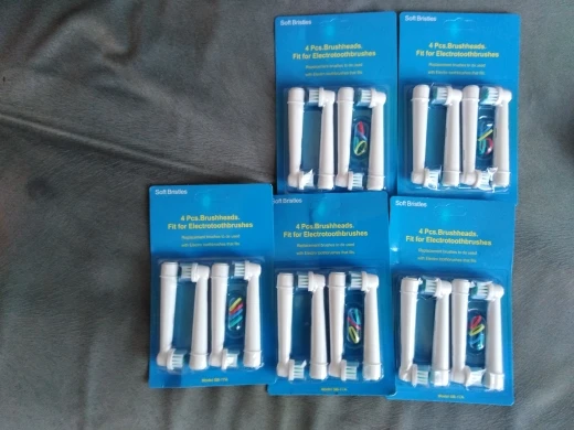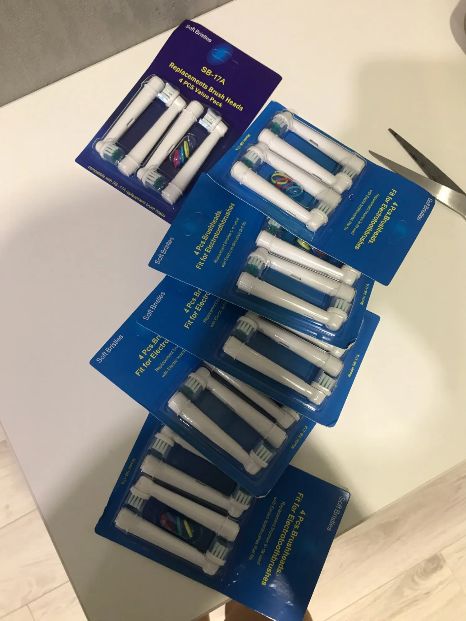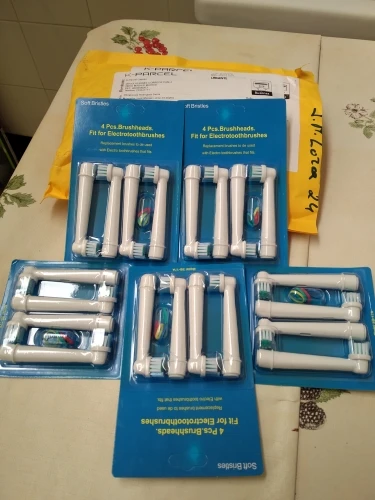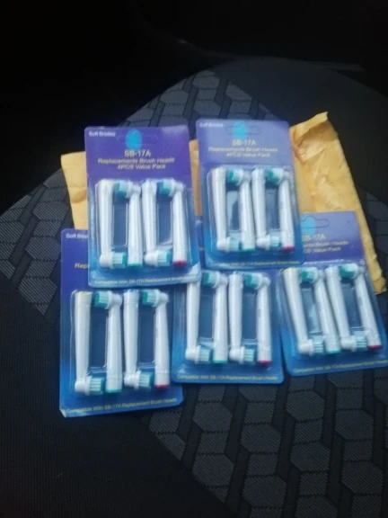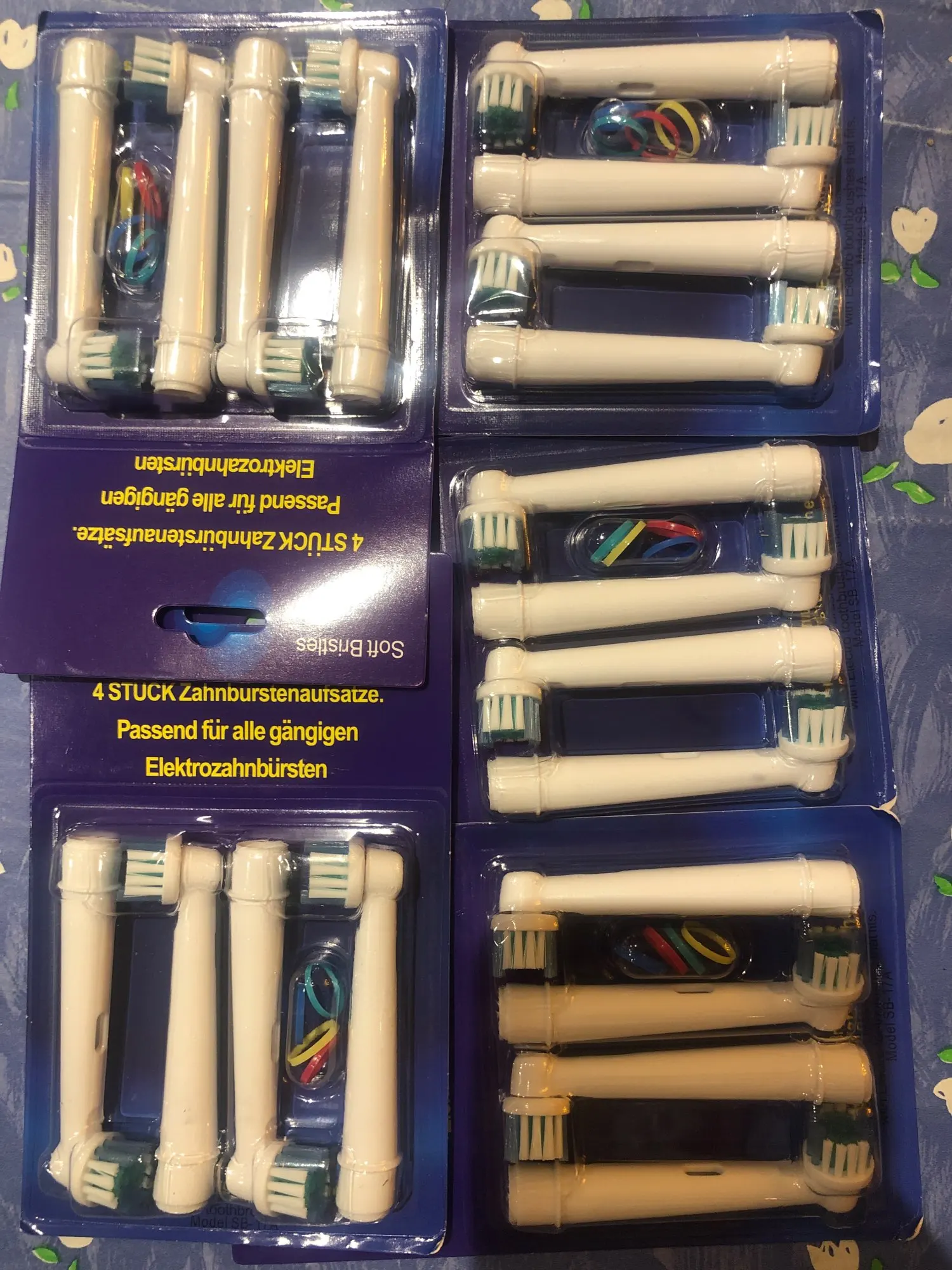 Быстрая доставка, до г.Уфа за 12 дней, товар отличного качества. Продавец прислал 5 упаковок по 4 щетки в каждой. Подходит на Oral B как с батарейками так и на индукционную профессиональную. Качество щетины очень хорошее, средняя жесткость. Товар соответствует описанию 100%. Всем рекомендую продавца и товар.