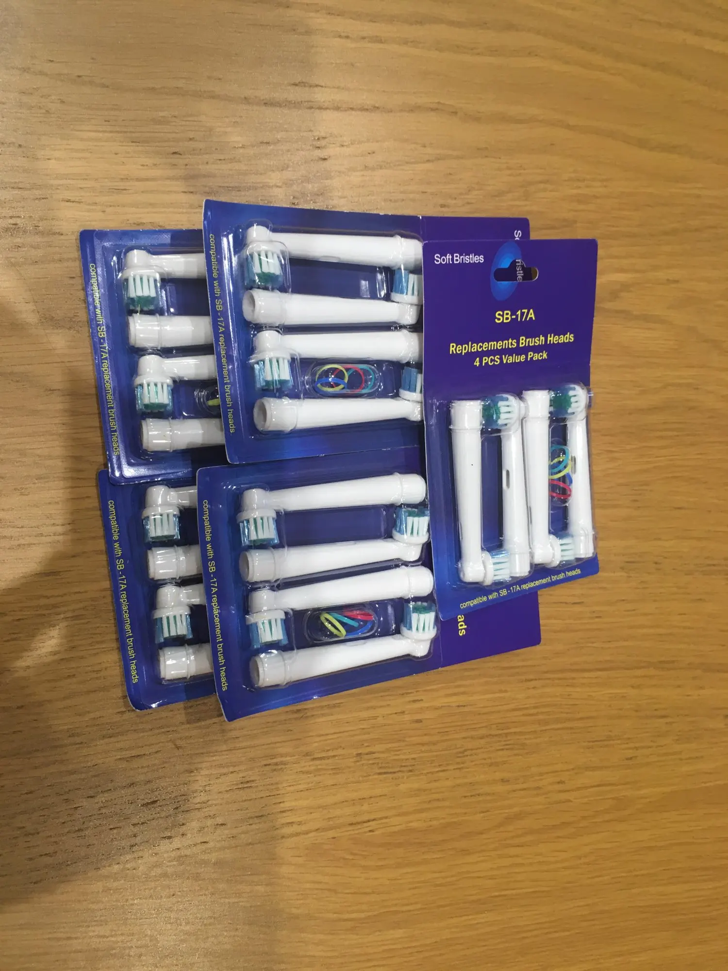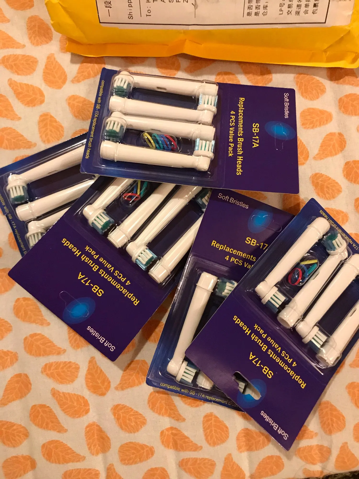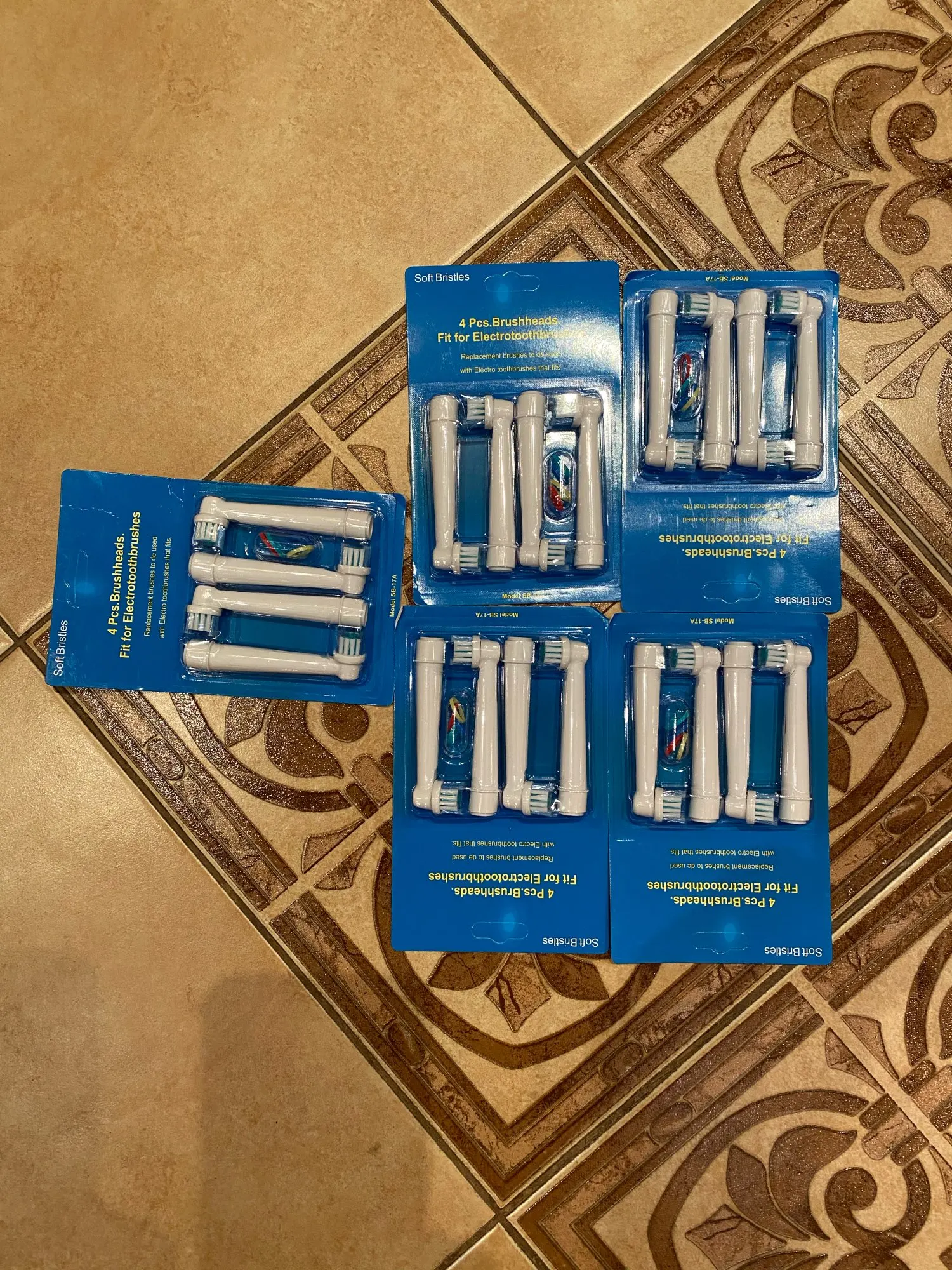 Быстрая доставка, до г.Уфа за 12 дней, товар отличного качества. Продавец прислал 5 упаковок по 4 щетки в каждой. Подходит на Oral B как с батарейками так и на индукционную профессиональную. Качество щетины очень хорошее, средняя жесткость. Товар соответствует описанию 100%. Всем рекомендую продавца и товар.