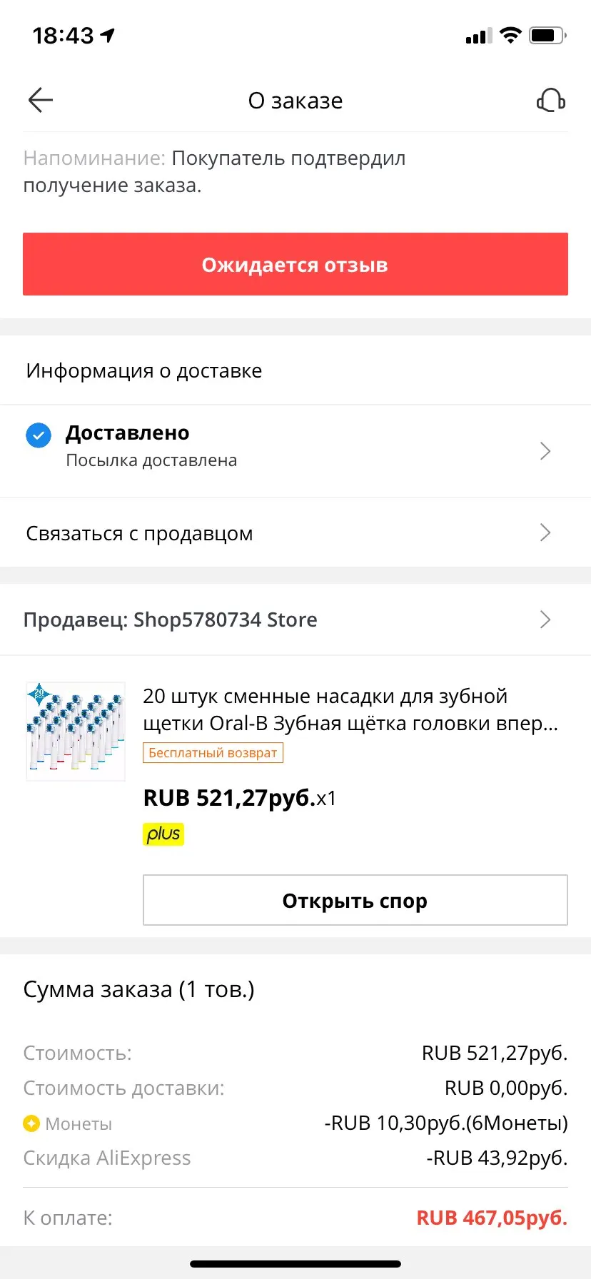 Заказ не был получен. Продавец отправил товар, но посылка была возвращена с границы продавцу. Повторно продавец не отправил заказ. Я связался с продавцом, он рекомендовал открыть спор для возврата стоимости. Спор открыл, на следующий день оплата была возвращена. 5 звезд за оперативный возврат денег продавцом.