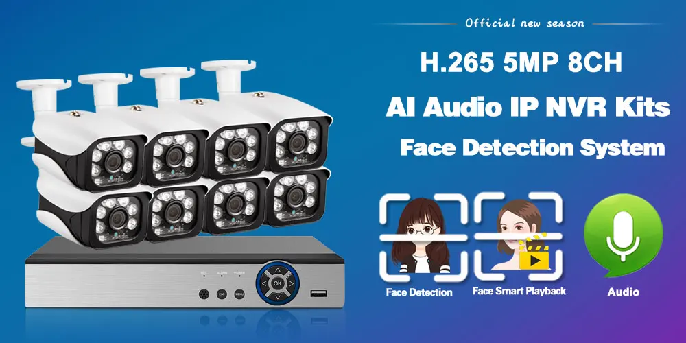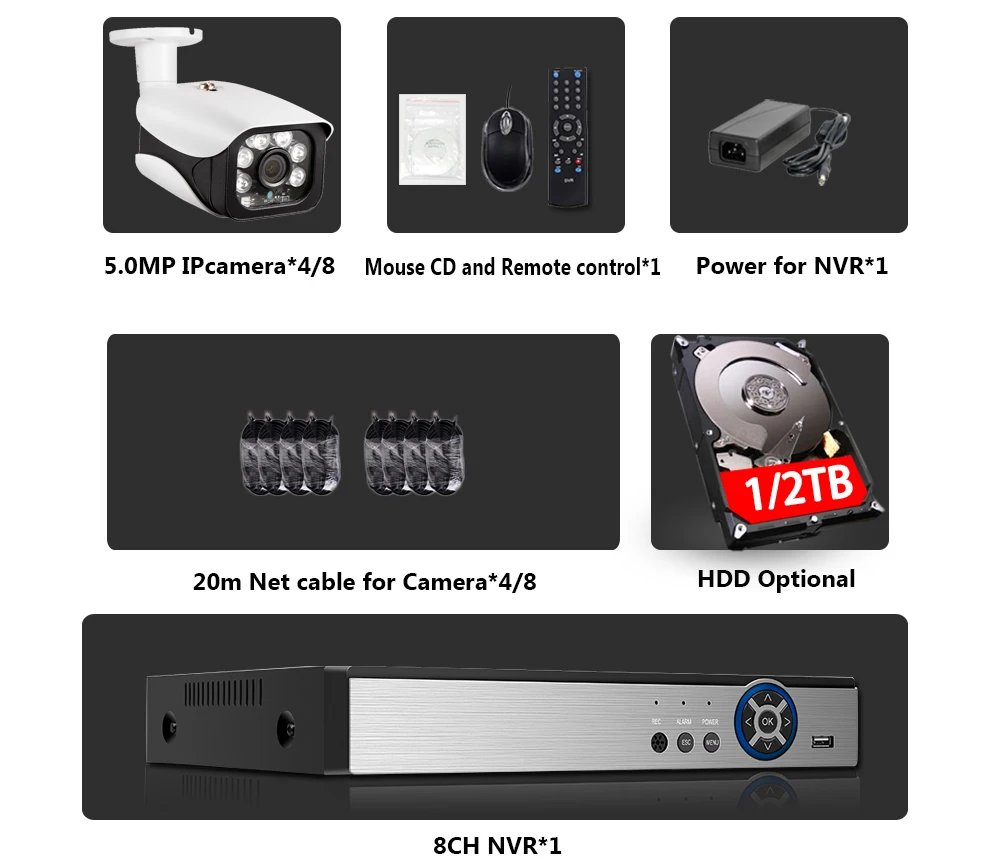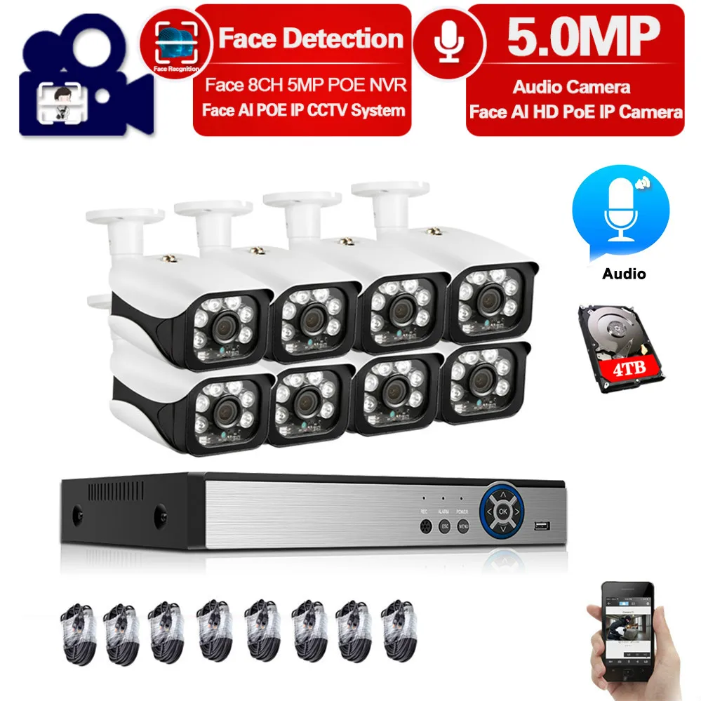 Система видеонаблюдения H.265 HD, 8 каналов, 5 МП, комплект сетевого видеорегистратора, IP-камера с записью звука, IP66, P2P, уличная система видеонаблюдения, комплект сетевого видеорегистратора