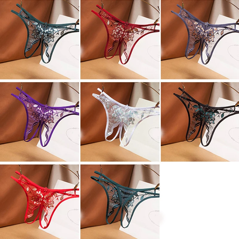 Сексуальные прозрачные женские стринги с цветочной вышивкой, открыт...