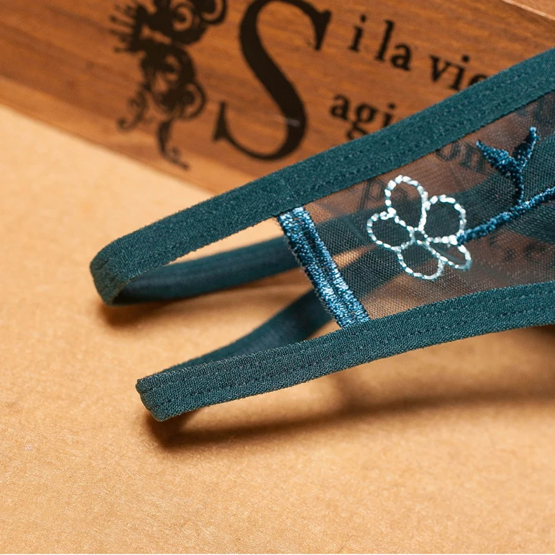 Трусики-стринги женские, с вышивкой во французском стиле, сетчатые, с низкой посадкой прозрачный