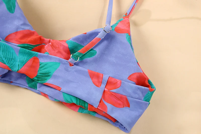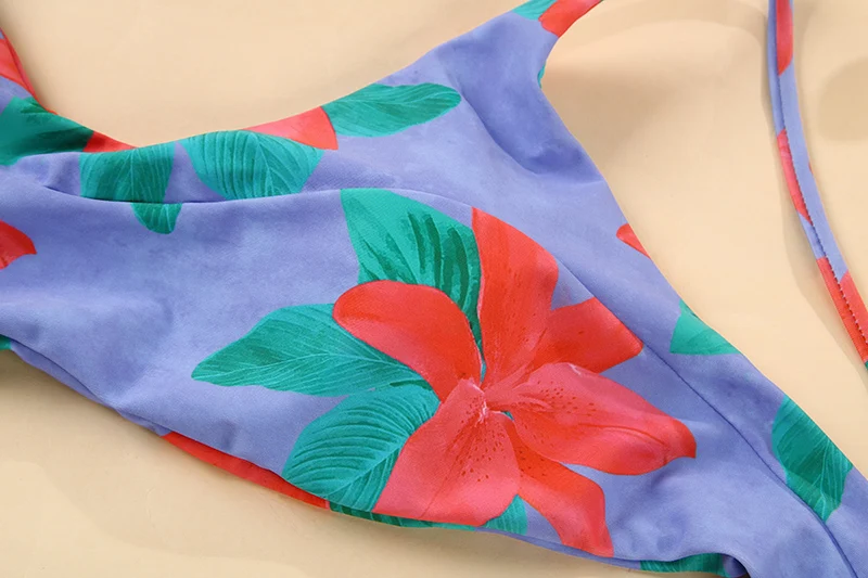 ZRTAK 2020, женские бикини с цветочным принтом, синий купальник в стиле ретро, женский пляжный купальник, бикини со стрингами, комплект бикини