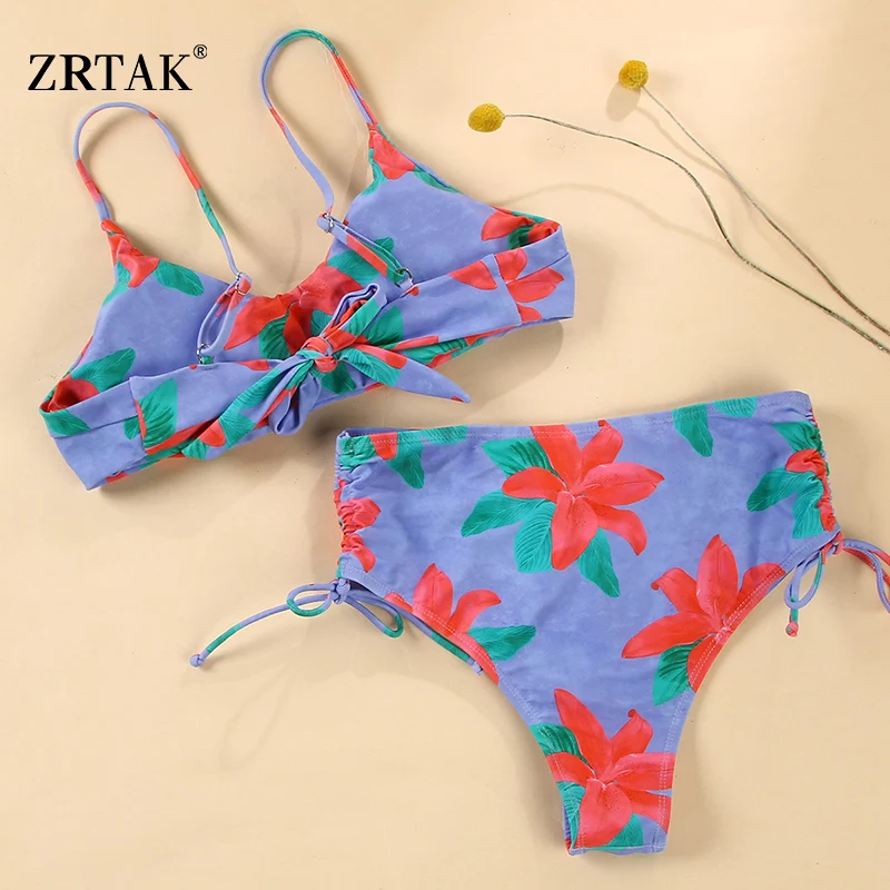 ZRTAK 2022 женский бикини с цветочным принтом с высокой талией в ст...