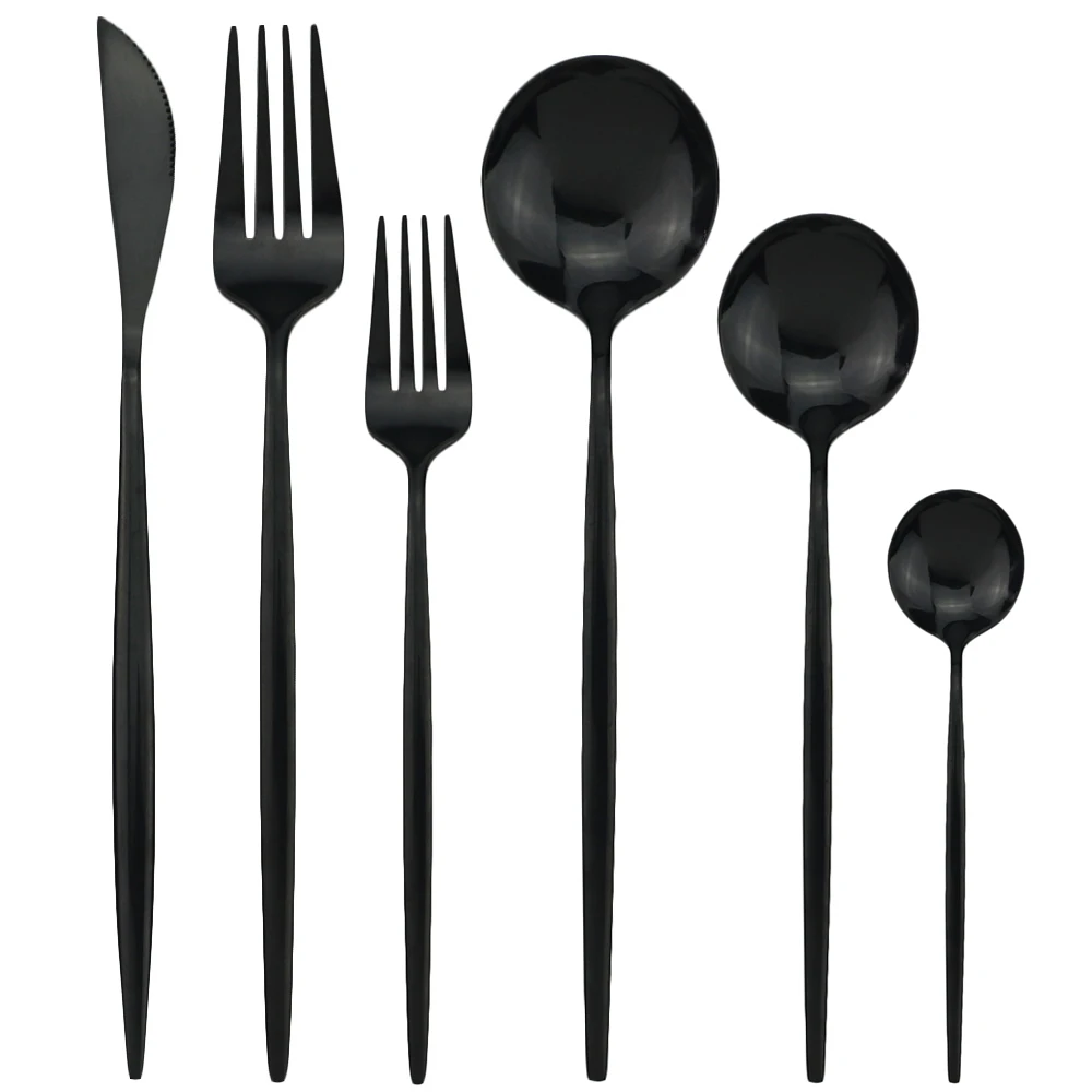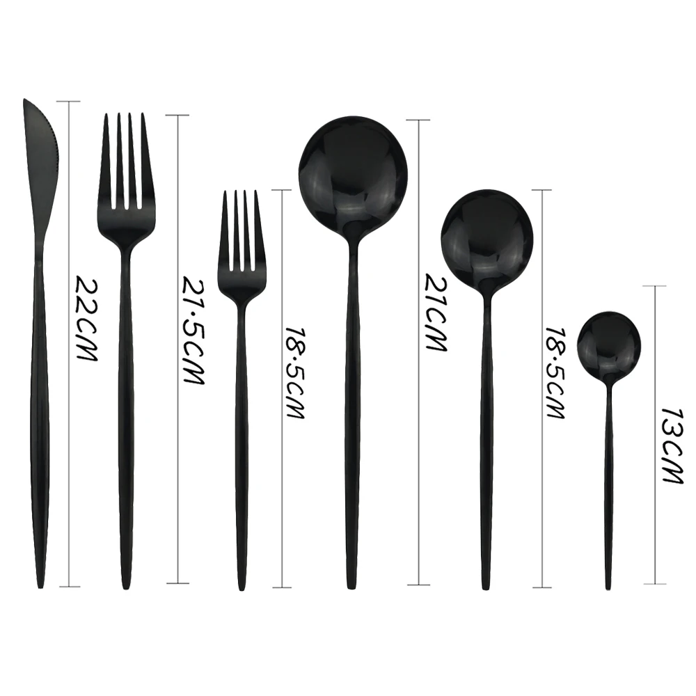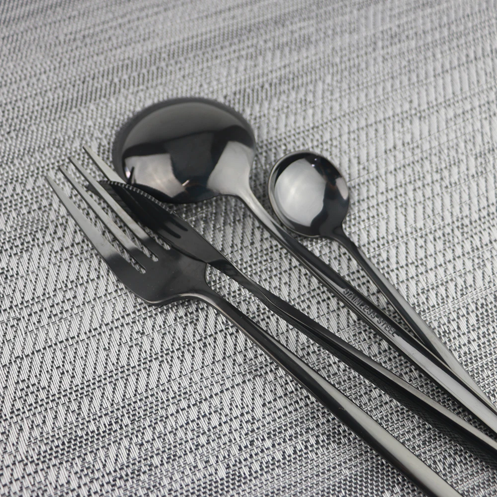 Набор черной столовой посуды из нержавеющей стали 304, нож, вилка, ложка