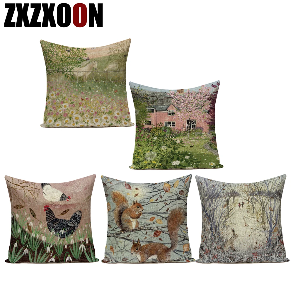 Искусственная подушка с изображением животных, лисы, совы, лосят, ч...