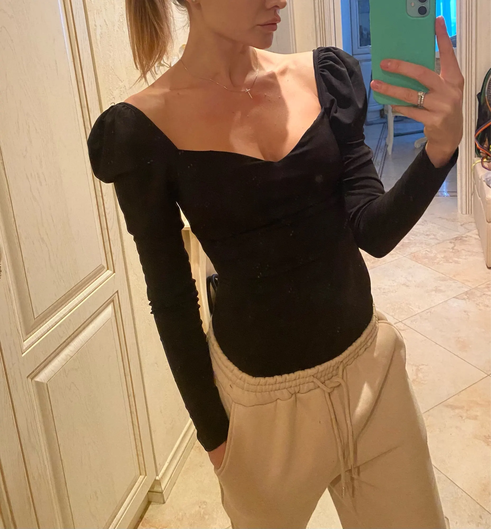 Женская Осенняя рубашка GREMISS, однотонная приталенная блузка с пышными рукавами, с V-образным вырезом и длинными рукавами, Элегантный квадратный вырез