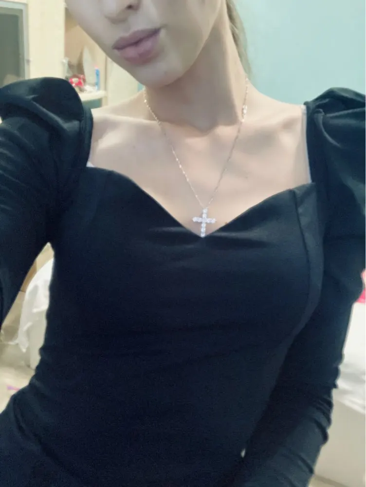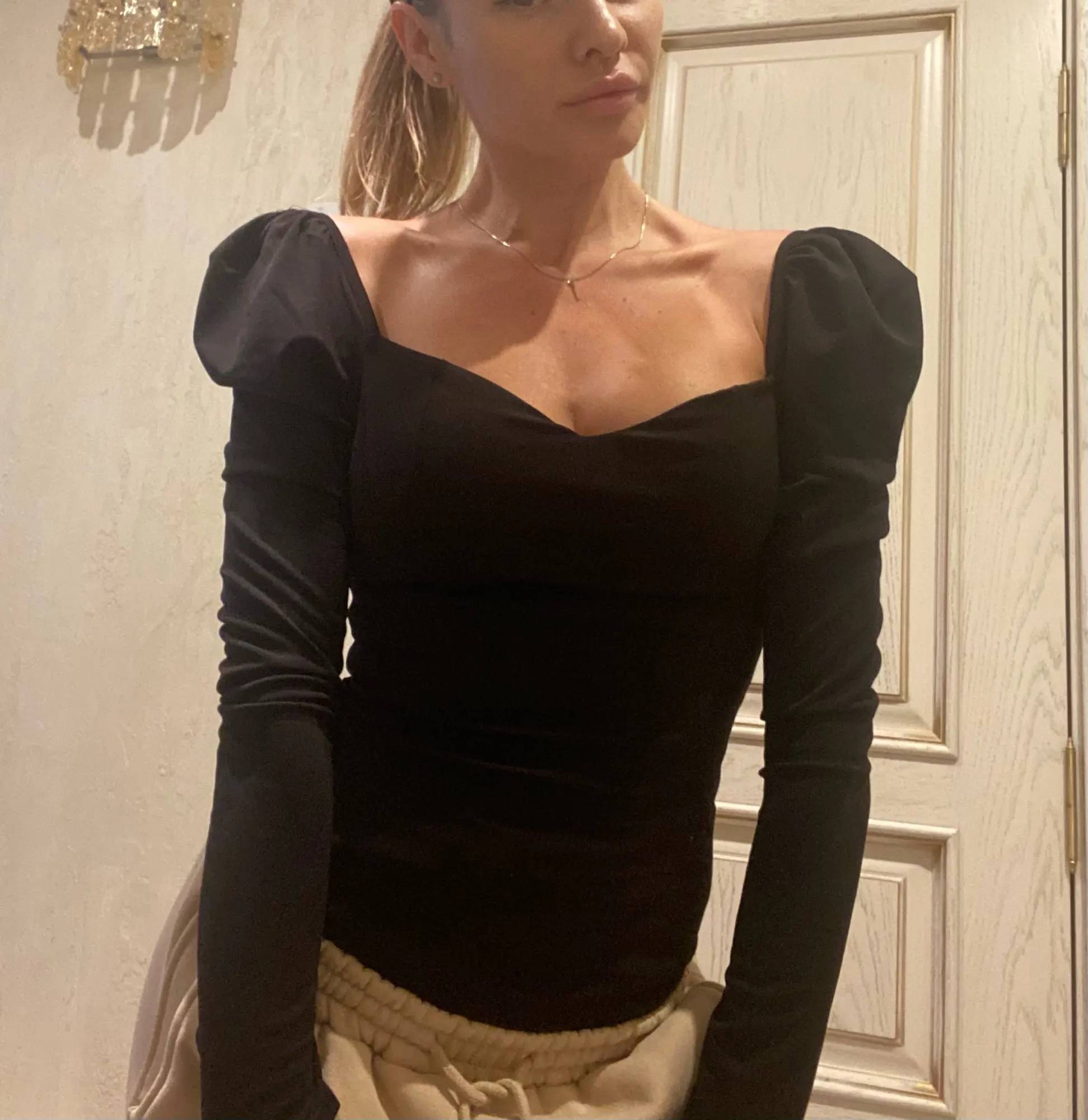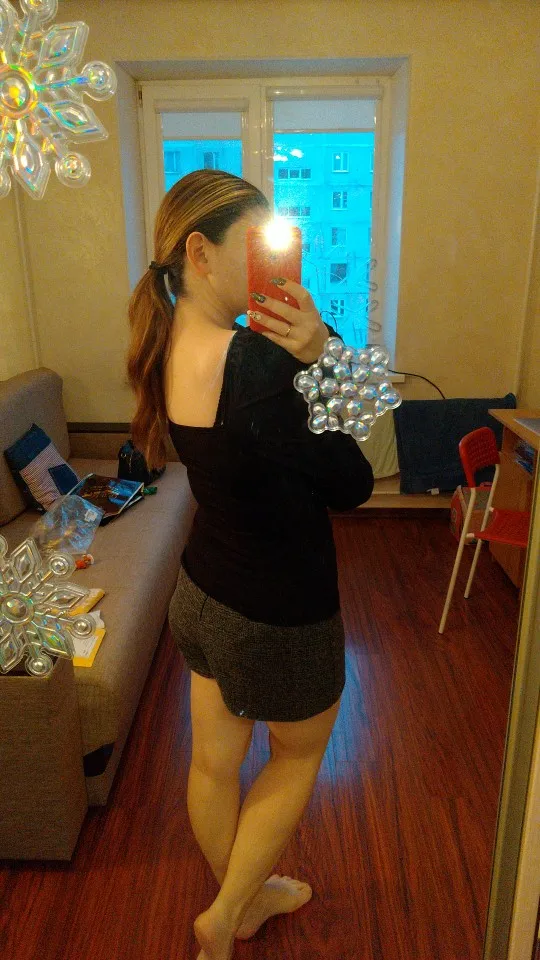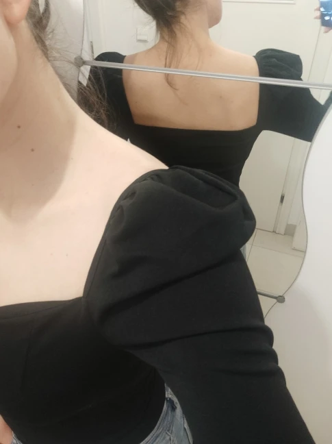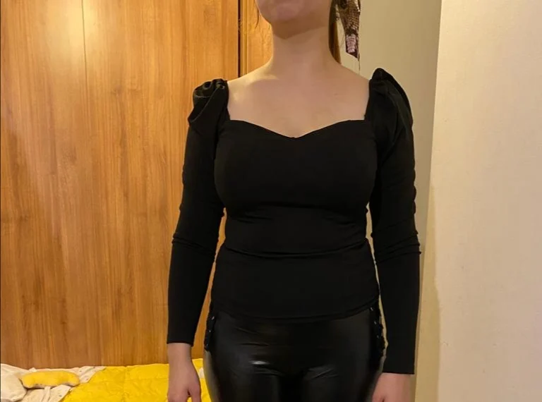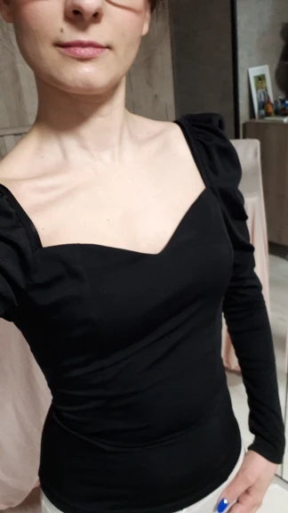 Взяла S на 173 90-60-90, тесновато, но не жалею, потому что размер больше был бы в груди, плечах и руках слишком свободен. Тяжело натягивать, остаются на черном любые следы от дезодоранта, с этим аккуратно надо. Ткань плотная и не самая приятная, но все окупается внешним видом. Кофточка на вечер покрасоваться, явно не ходить весь день в ней. Доставка быстрая