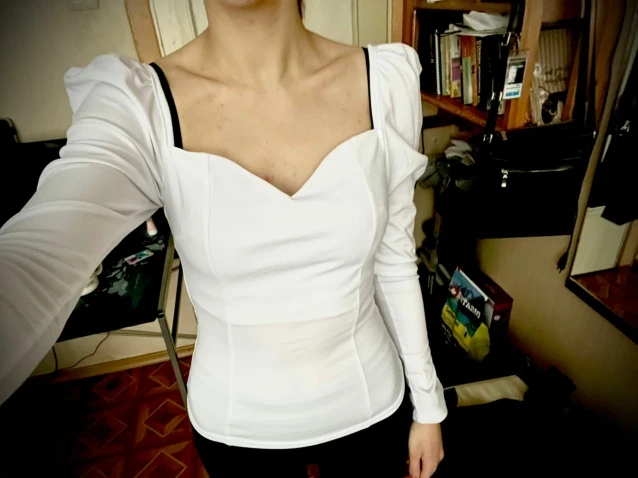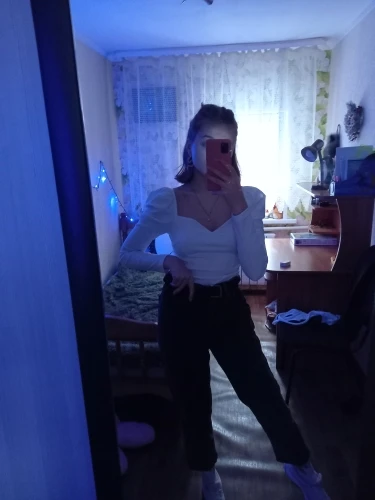 Мой рост 92 см, а талия 78 см. У меня есть размер L, и это нормально, но туго на талии и немного коротко. Однако мне нравится верх. Приятный материал и то же самое на фотографиях. Я ношу белый бюстгальтер, и он не просвечивается. Доставка в NL была 3 недели. Единственный низ в том, что верх левого рукава не дает мне упасть. Кроме того, это отличный топ. Мне нравится!