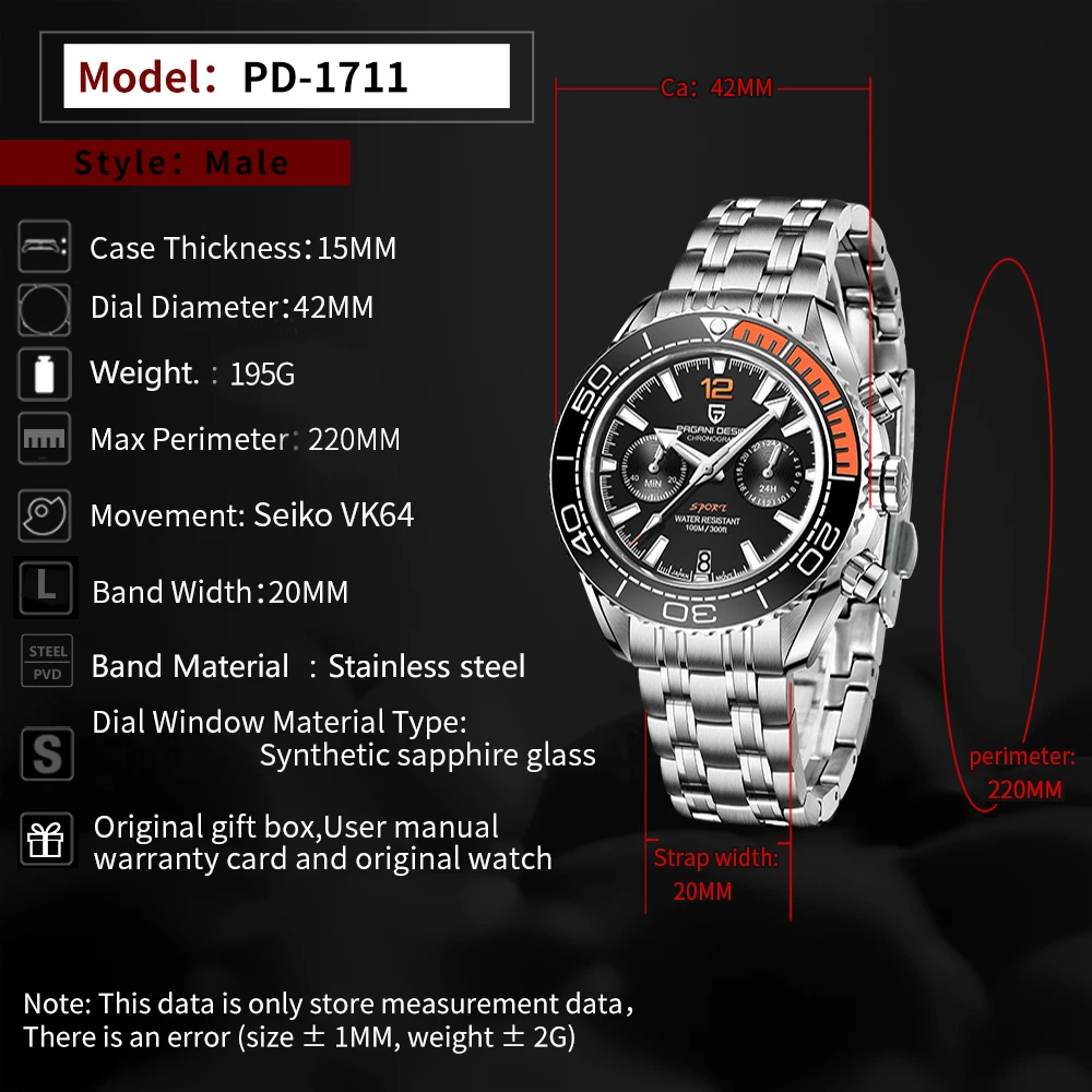 PAGANI Дизайн Топ бренд нержавеющая сталь Мужские кварцевые наручные часы водонепроницаемые 100 м сапфировое стекло Хронограф японский VK64 relogio