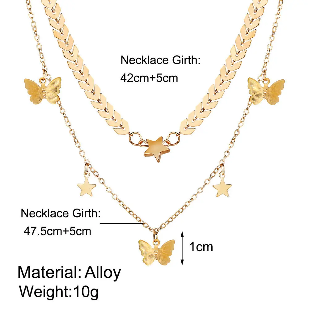 Двухслойное ожерелье с подвеской-бабочкой и звездами, украшение для...