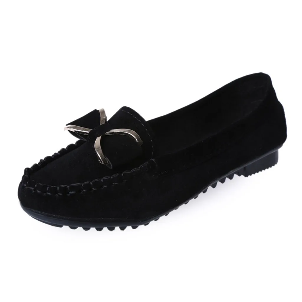 Женские лоферы из флока, на плоской подошве, с бантом, размера плюс...