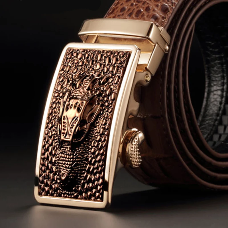 Мужской ремень из натуральной кожи, с автоматической пряжкой