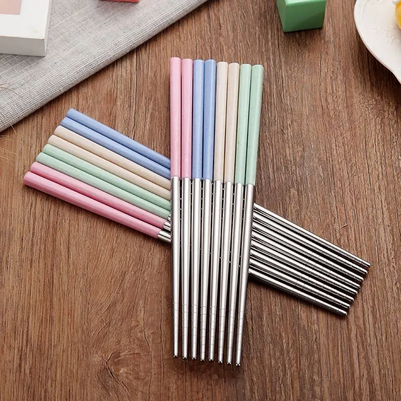 Палочки китайские из нержавеющей стали, портативные, многоразовые, для путешествий для палочек, 1 пара