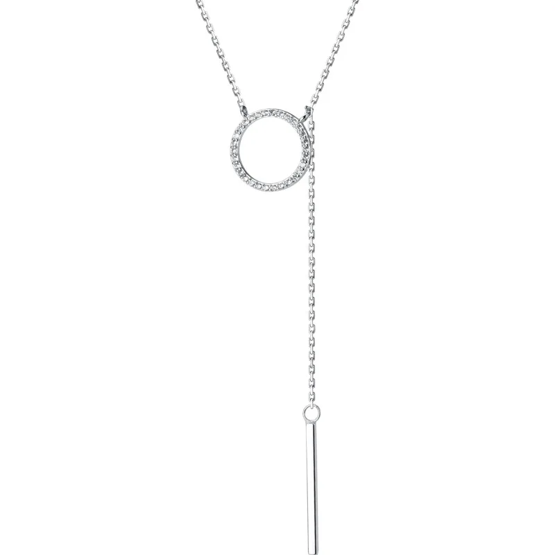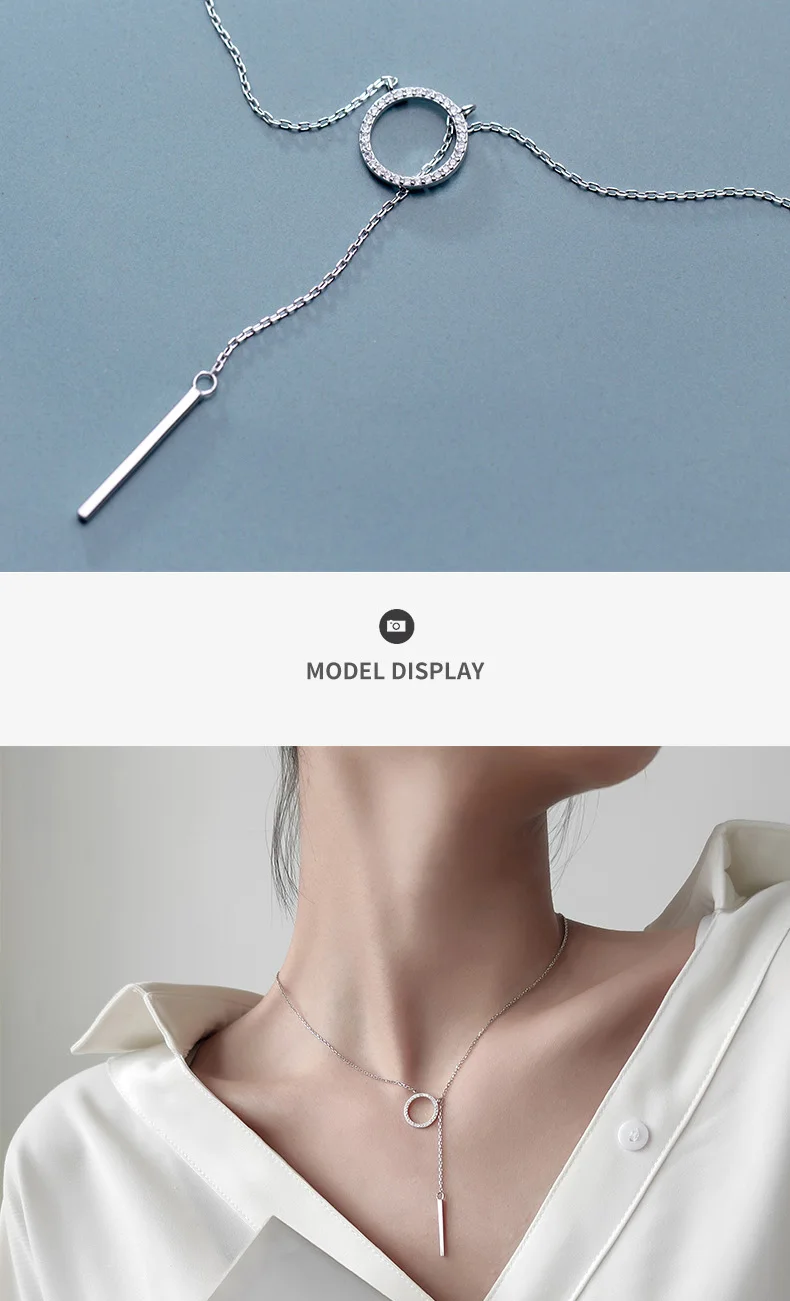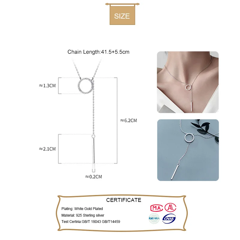 TrustDavis 925 Стерлинговое Серебро, круглая палочка, цепь, сверкающий кулон CZ, короткое ожерелье до ключиц для женщин, серебро 925, ювелирные изделия DA982