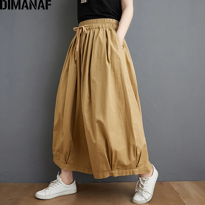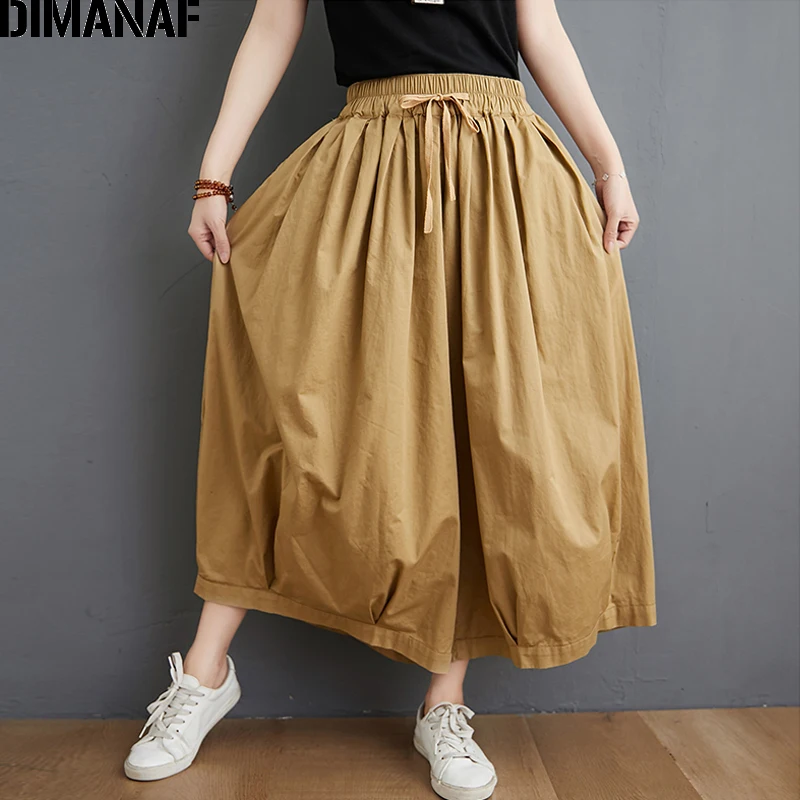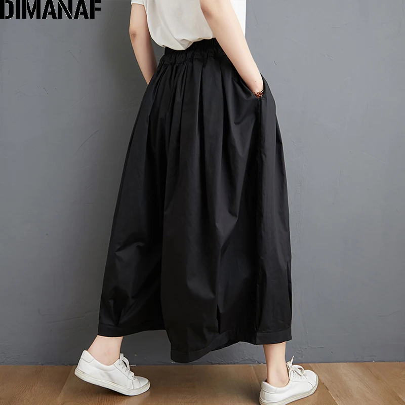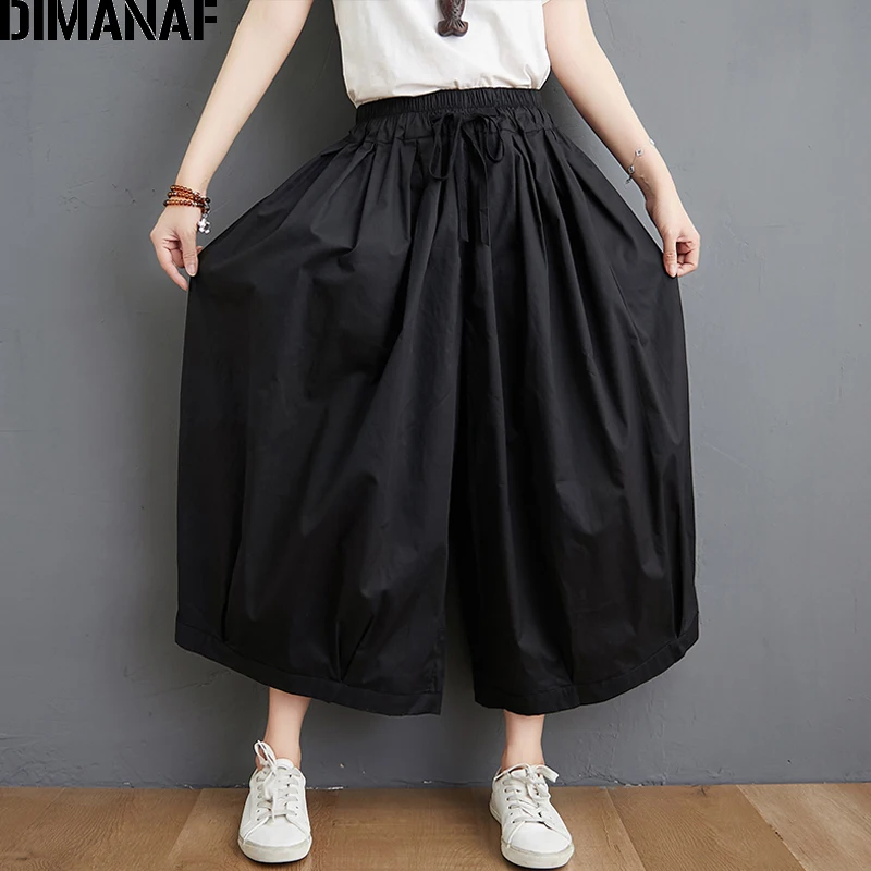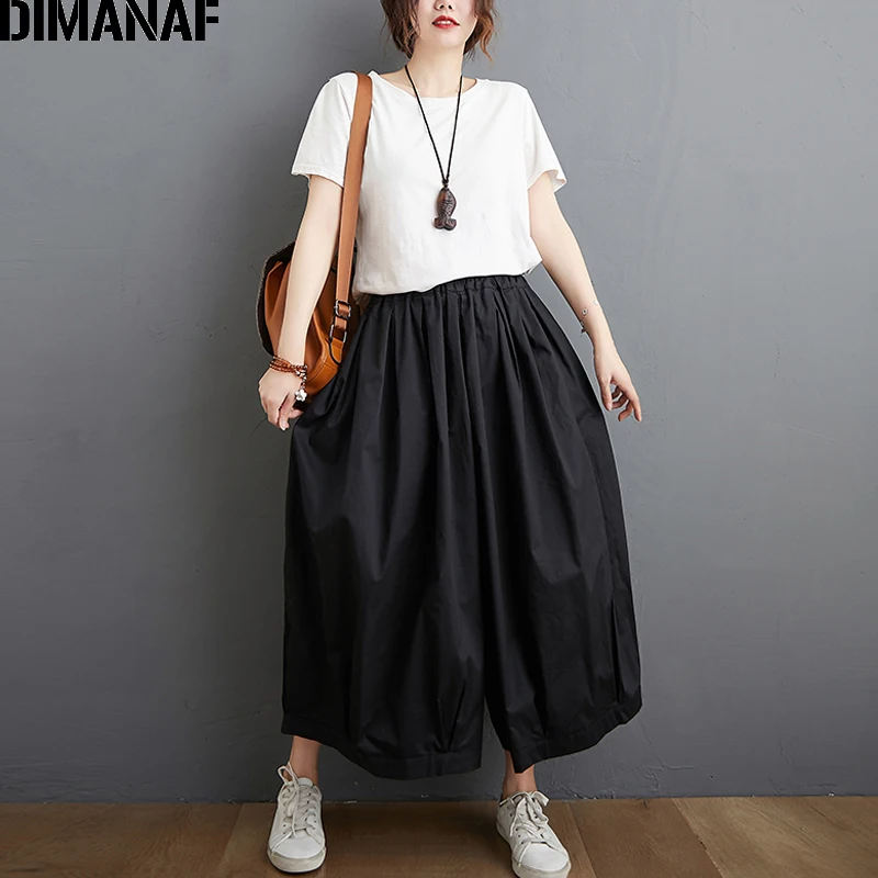 Женские плиссированные брюки DIMANAF, свободные штаны с широкими штанинами, однотонные штаны большого размера