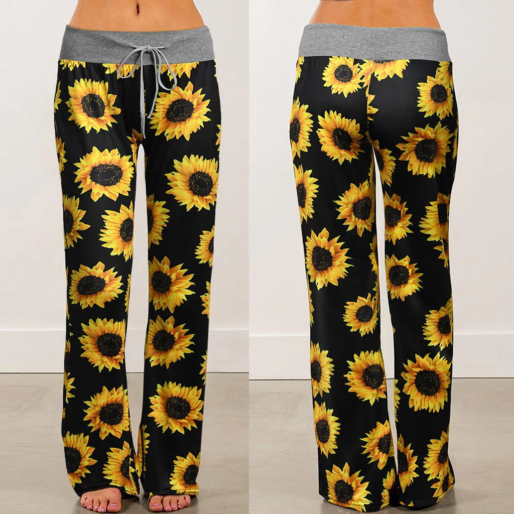 Женские леггинсы с принтом подсолнухов 30H, удобные эластичные спортивные Леггинсы со шнурком, свободные брюки палаццо с широкими штанинами для отдыха