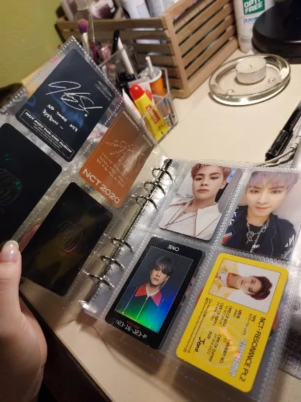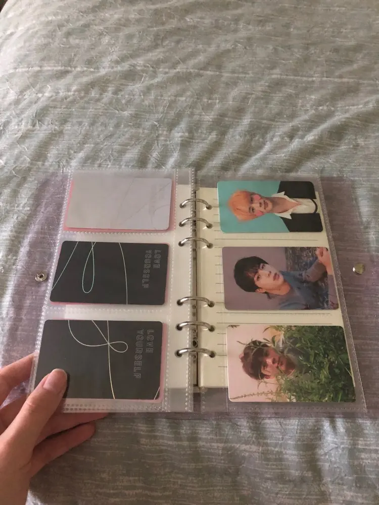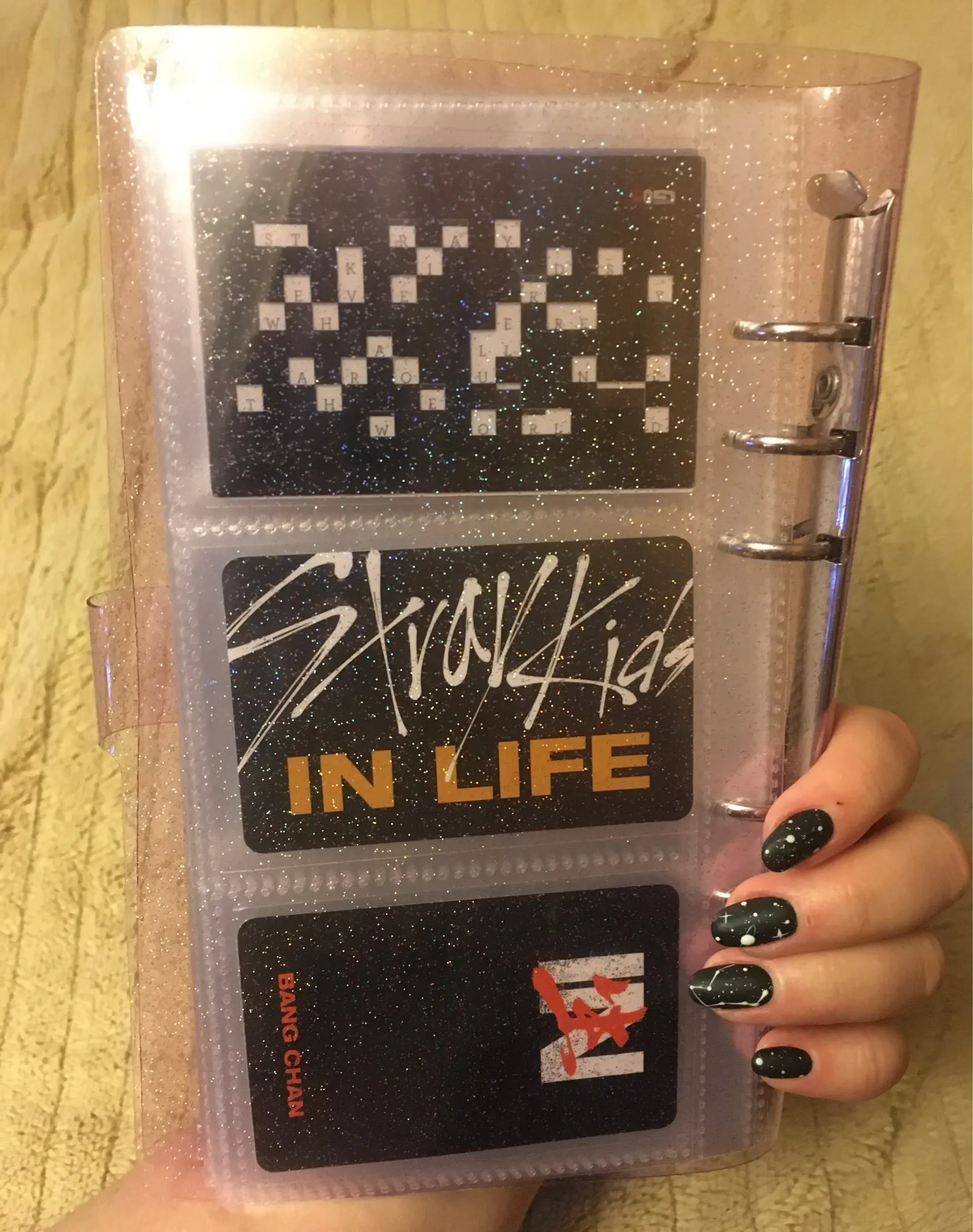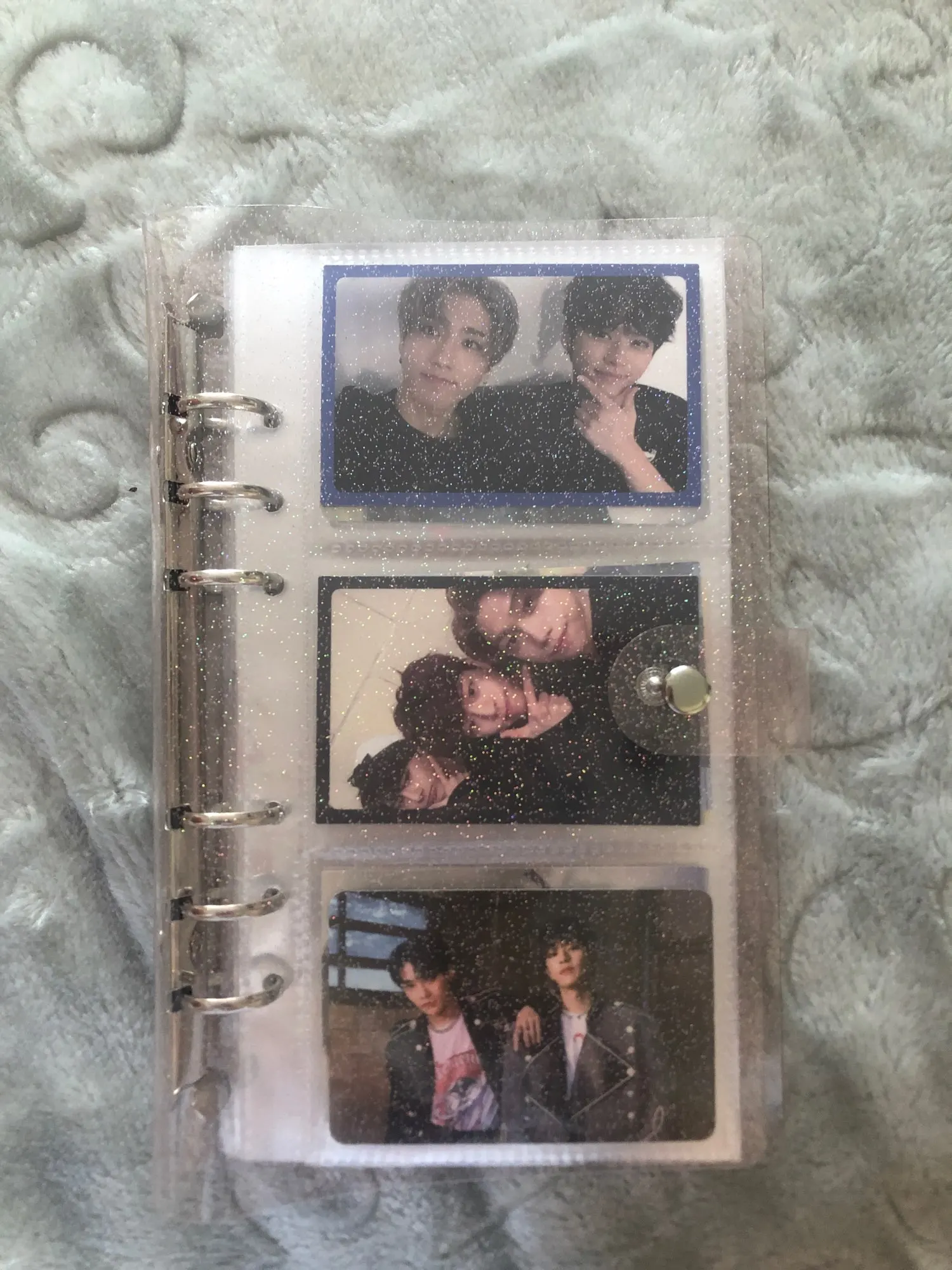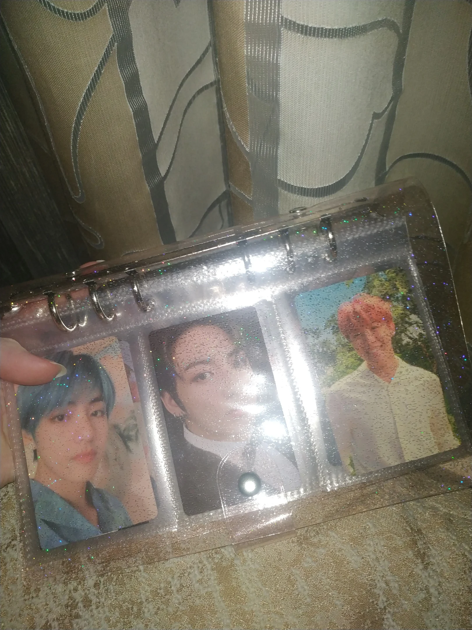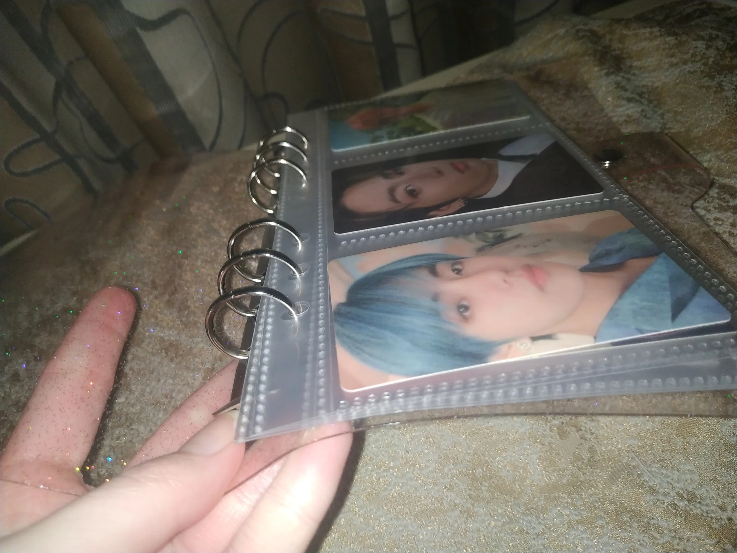 Фотобук с 2 разделениями подходит для карт тхт(из первых трёх альбомов), для других групп(у меня скз, иччи, трэже, бтс) подходят с 3, 4 разделениями. Сам биндер очень красивый, листы хорошие. До Москвы дошло очень быстро, примерно 1,5 недели.