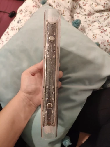 Цвет был очень милым бледно-розовым! Кольца также легко открываются и закрываются! Он немного пахнет и имеет странную текстуру в некоторых пятнах, но вода или влажная салфетка не чистятся!