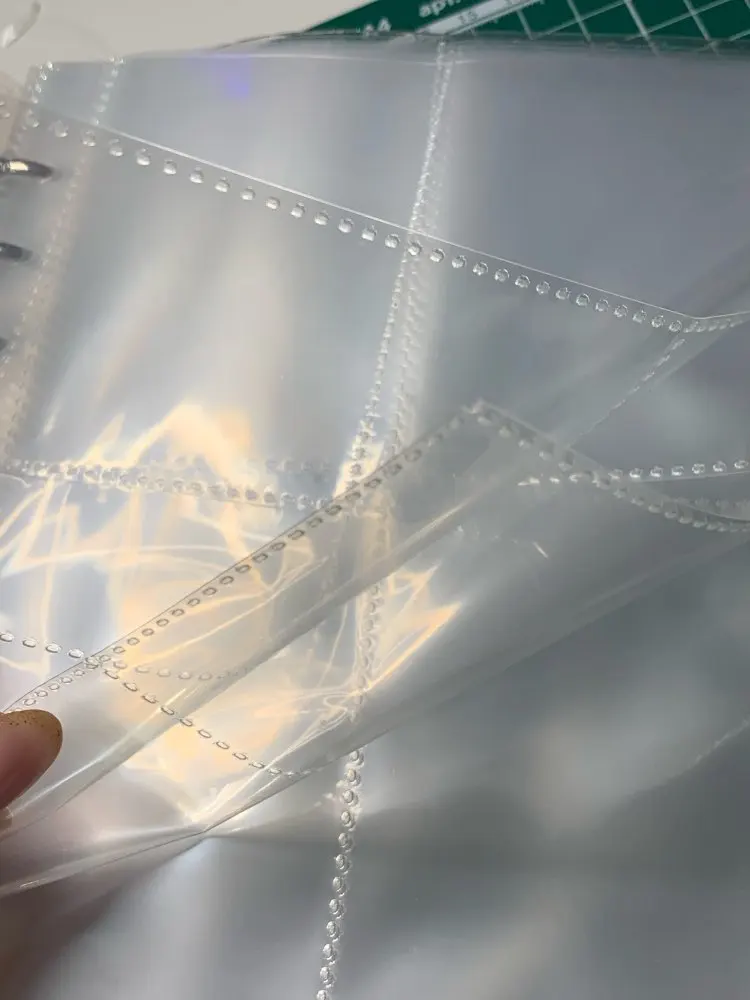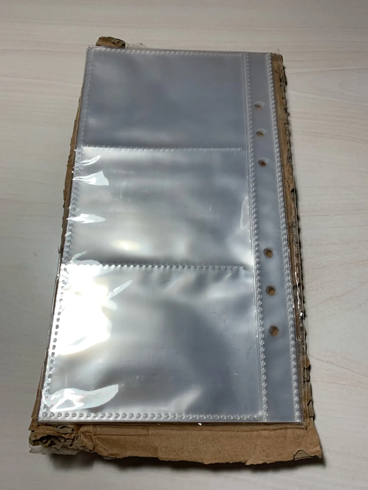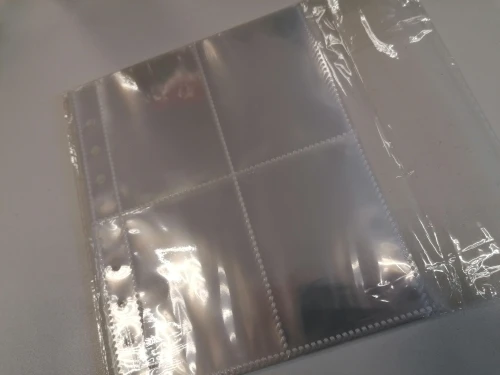 отличный биндер! дошёл быстро, в хорошем состоянии. листы двусторонние, не особо плотные, зато глянцевые - голо и лентикулярки будут смотреться как надо :> у версии на три кармашка прорези сбоку, поэтому при листании стандарные альбомные карты могу немного вылетать, а вот размером ~63х89мм сидят идеально. в целом, покупкой довольна, для больших коллекций советую сразу брать доп. листы.