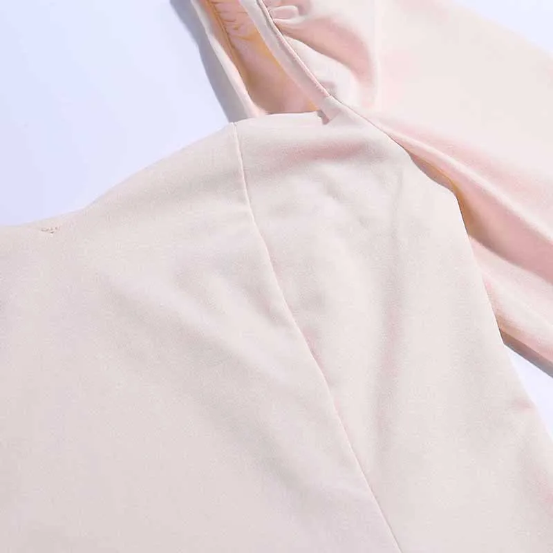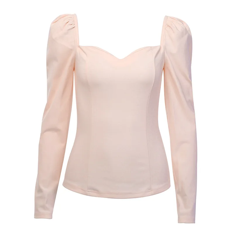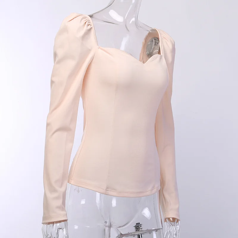 Женская Осенняя рубашка Sofu, однотонная приталенная блузка с пышными рукавами и V-образным вырезом, Элегантный квадратный вырез