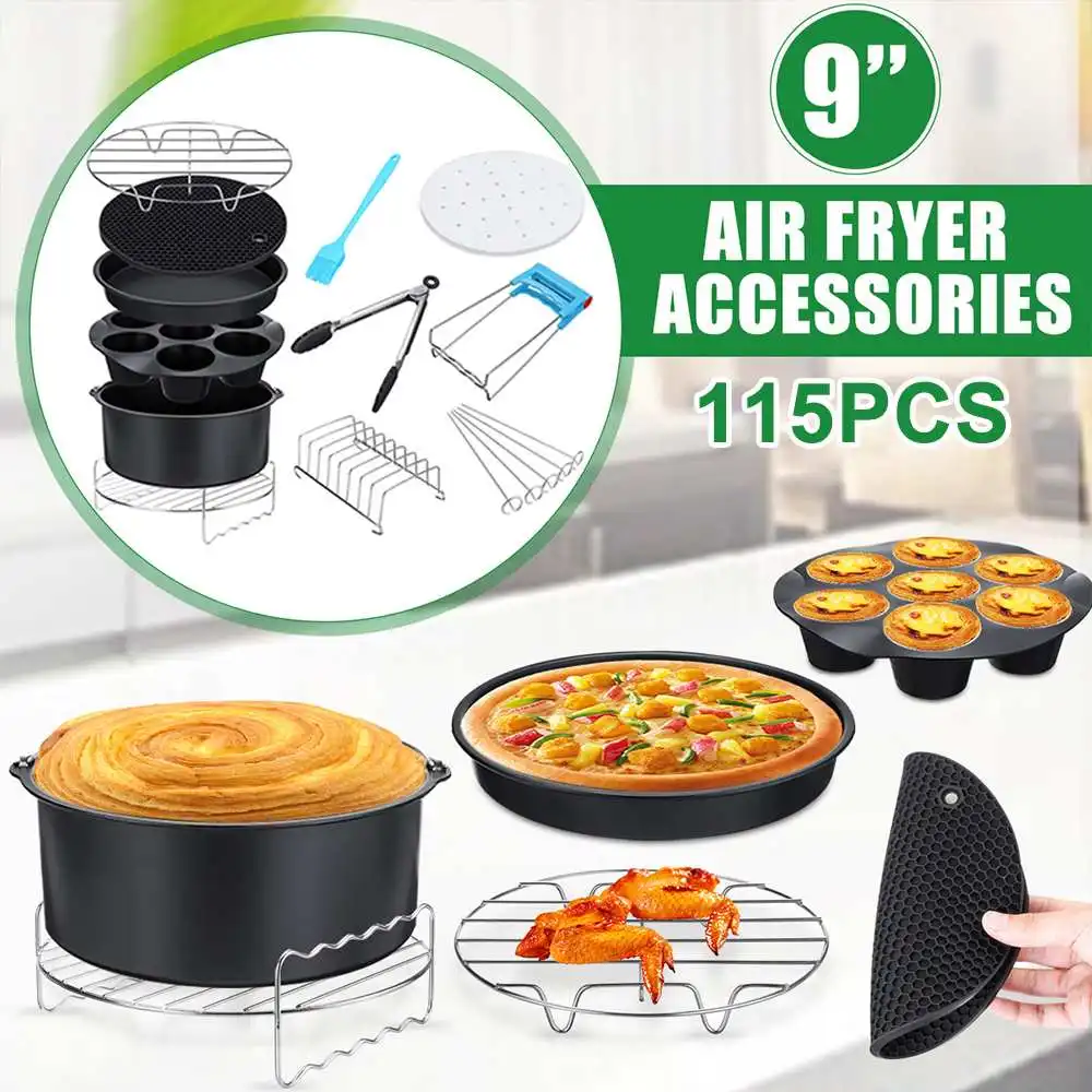 115 шт.компл. аэрофритюрница для приготовления блюд без доступа 9 дюймов, пригодный для Airfryer 5,2-6.8QT выпечки корзина пицца плита гриль горшок Кухня Пособия по кулинарии инструмент для вечерние