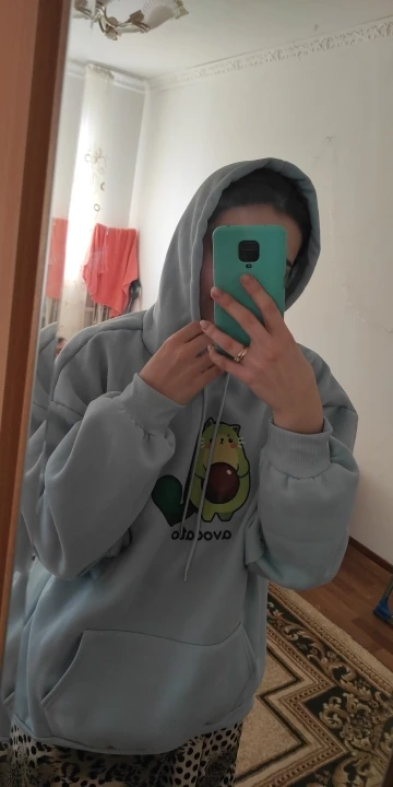 Толстовка хорошая. Рисунок яркий, брала L подруге в подарок, хотя можно было и меньше взять, L на меня хорошо сел (164 рост; 86 грудь;70талия; 98 бедра). Пахнет химией, но нужно постирать, думаю, просто. На фото можно видеть, что капюшон внутри со швом. Продавец быстро ответил на мои вопросы.
